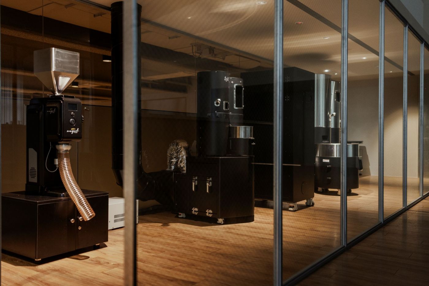 如精品櫥窗般陳列的烘豆室選用比賽指定旗艦機種,確保Ninety Plus的咖啡都是最高規格品質保證。(photo credit:Ninety Plus Retail Headquarter)