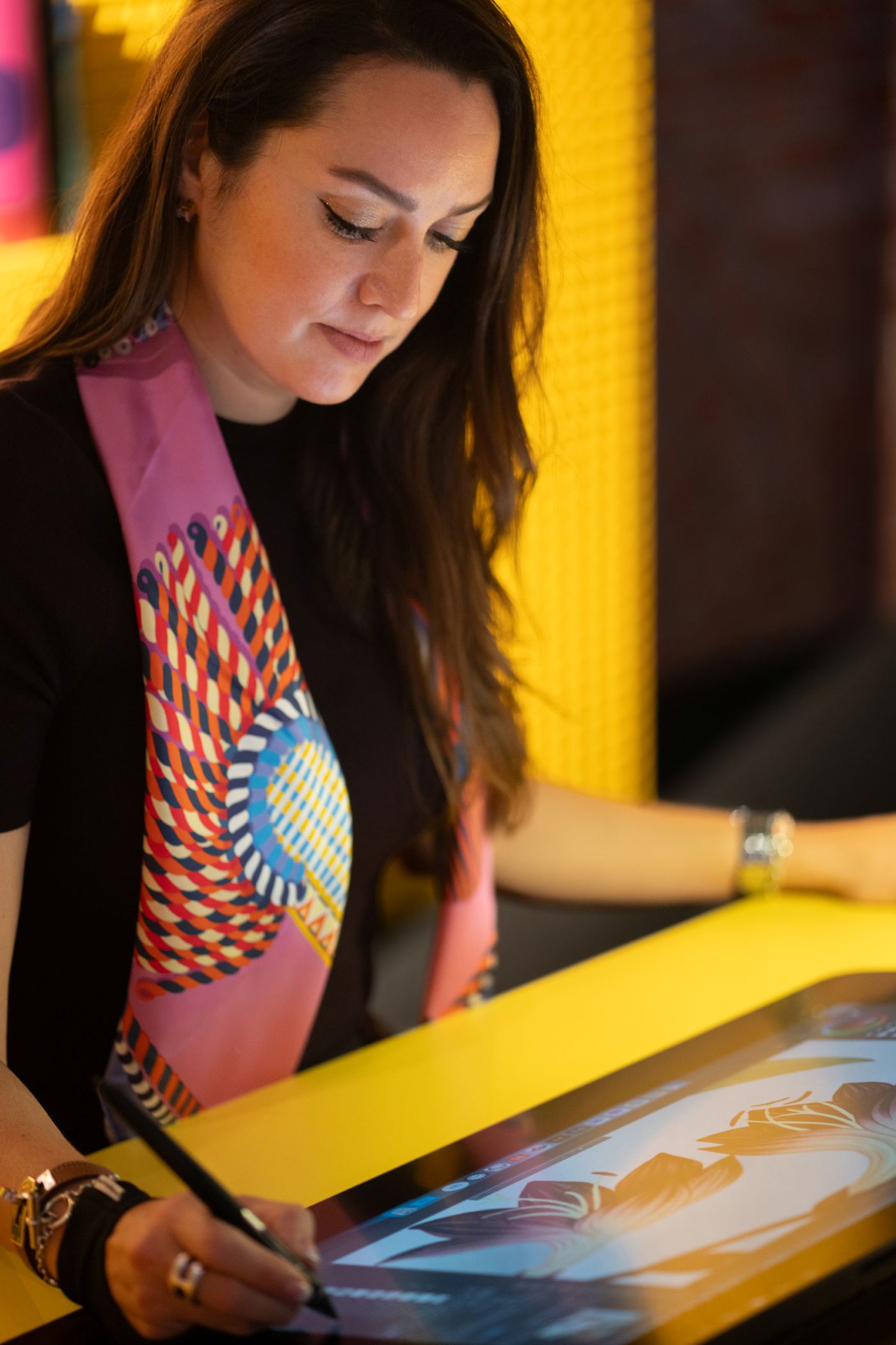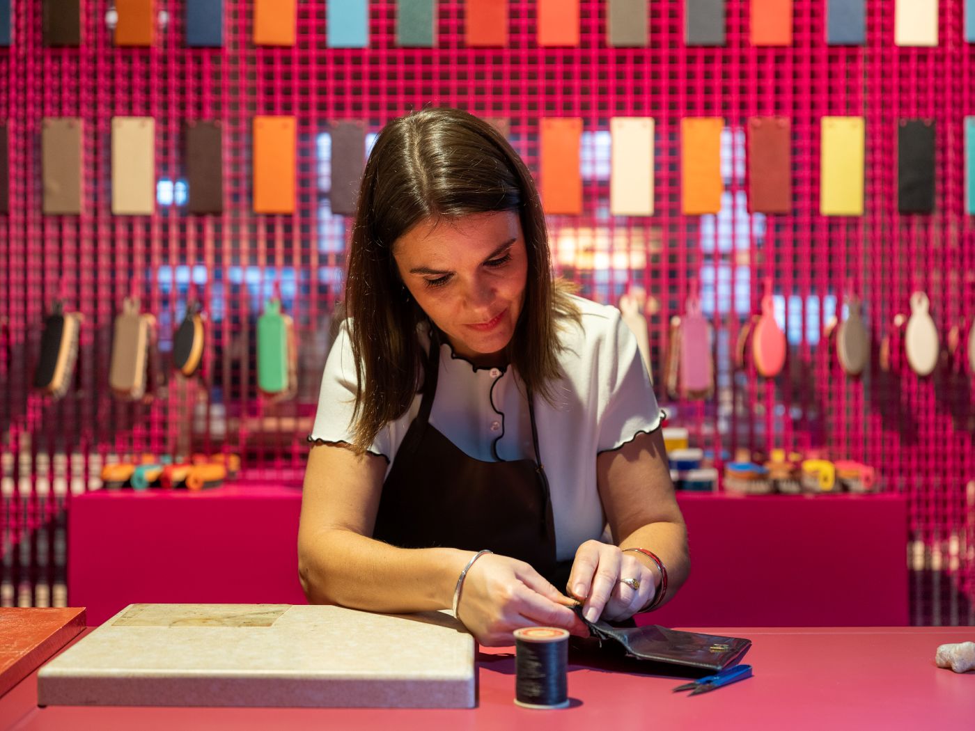 展覽以繽紛色彩與流動動線引導觀眾穿梭其中,設置多項充滿趣味的互動體驗:包括馬鞍針縫工作坊、修復故事交流、展現協作精神的互動裝置、以皮革圓刀敲擊創作的音樂互動,以及絲巾填色活動,邀請觀眾依循自身節奏自由探索工藝世界。現場亦播放由紀錄片導演 Frédéric Laffont 拍攝的《愛馬仕全球足跡》(Footsteps across the World) 系列影片,呈現品牌與永續發展的深刻連結。