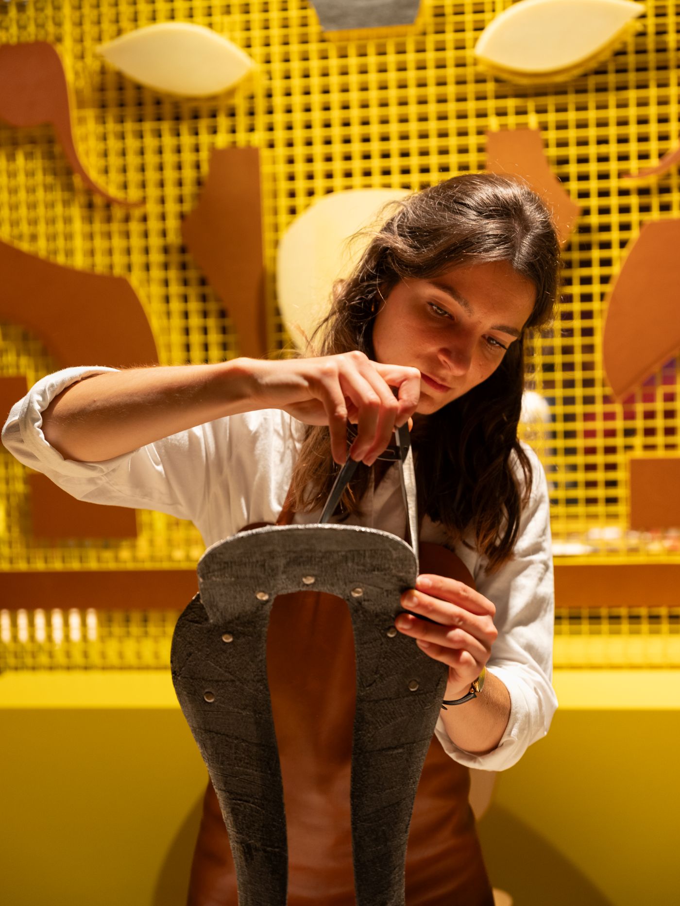 展覽將帶領觀眾探索愛馬仕的當代製作工藝,呈現如何以精湛手工技藝打造經久耐用且隨時間更具魅力的作品:從絲巾雕版與多層次色彩印染、Kelly 手提包的縫製細節、皮革手套的成形工序,到皮革修復的巧思、Hermès H08 腕錶的製作過程、Chaîne d’ancre 手環的精密鑲嵌,以及在白瓷上手繪《夜行獸》(Fauves de Nuit) 的細膩筆觸、Hermès Vivace 障礙賽馬鞍的精巧組裝。來自全球不同產品部門的愛馬仕工匠將親臨現場,攜帶他們珍愛的工具與材料,展現專業技藝與深厚傳承。