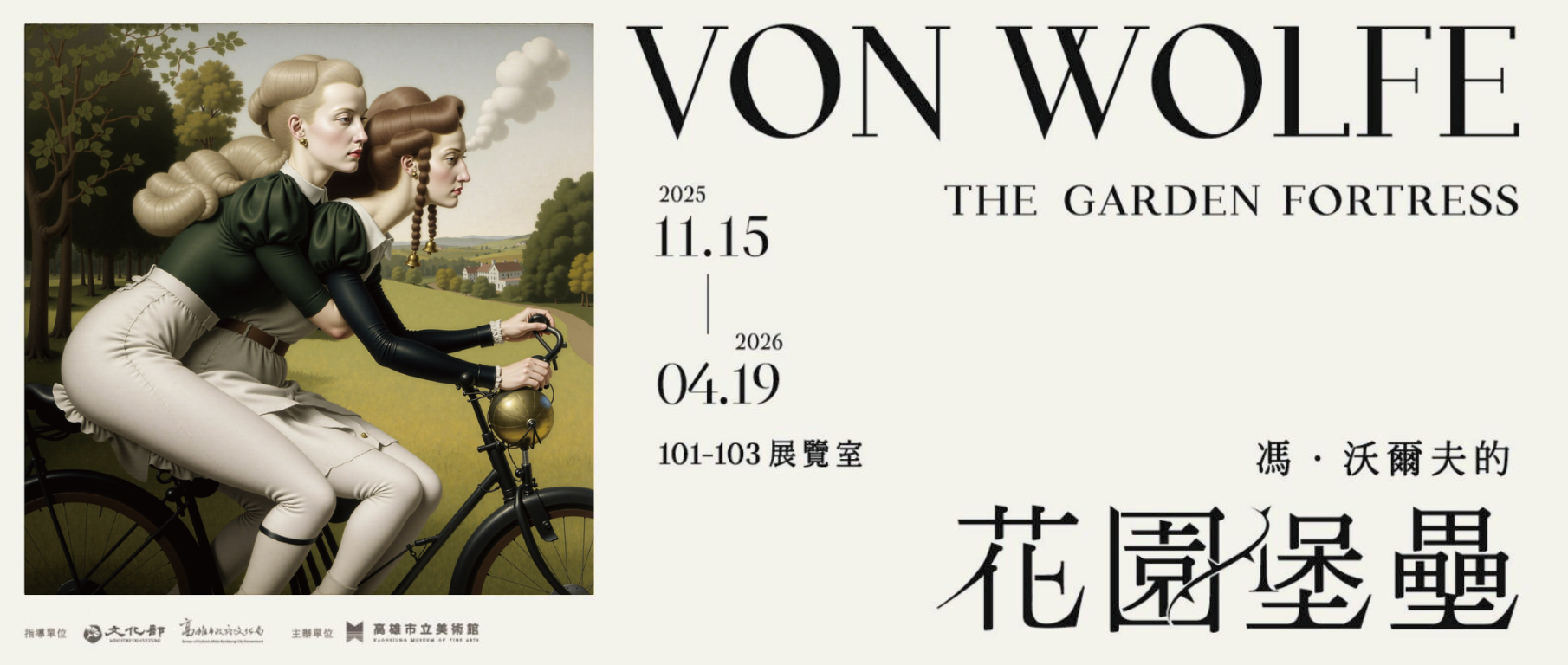 英國藝術家馮.沃爾夫(Von Wolfe)在亞洲的首次大型回顧展,悄悄把高美館變成了一個通往奇幻世界的入口。自 11/15 起正式開展,《馮.沃爾夫的花園堡壘》(The Garden Fortress)集結近 69 件作品,橫跨他 20 年的創作旅程。從古典油畫到人工智慧,從藝術史的深處到未來科技的邊界,馮.沃爾夫以既詩意又哲學的方式,提出了現代觀眾無法迴避的提問:在 AI 時代,人類的想像力將往哪裡去?