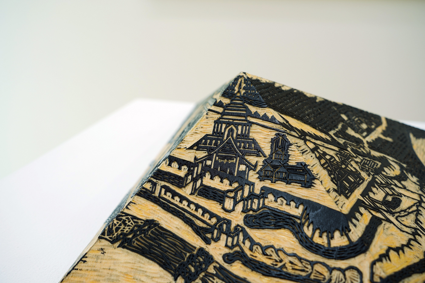 《清邁水文全覽圖》版畫的木版雕塑局部。(Photo Credit:MOT TIMES;Photography:Kura Yang)