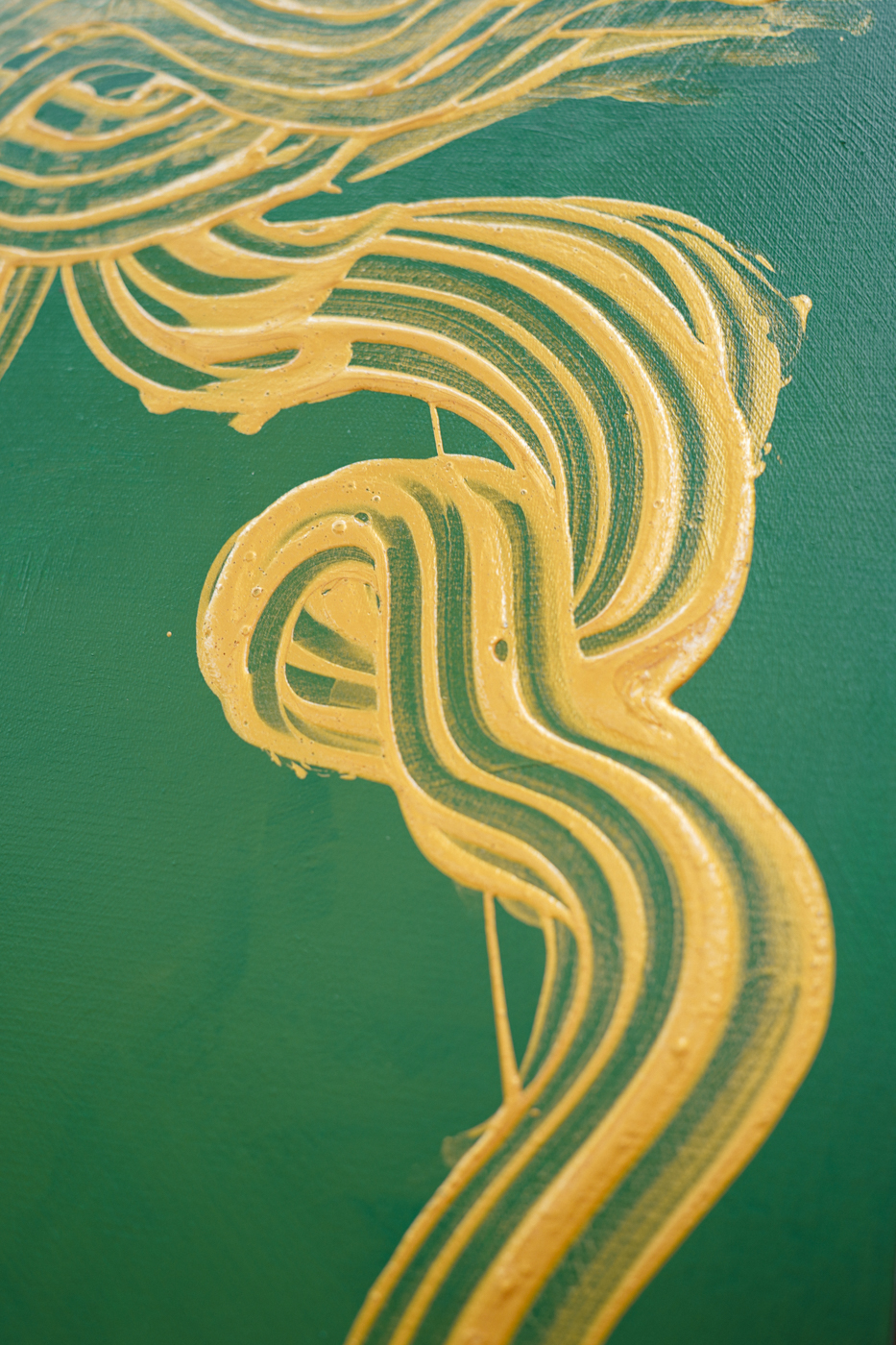 展中也呈現非水中場景的聲音繪畫,金色的筆觸選擇,是因為蔡坤霖相信聲音有靈魂,金色就是靈魂的象徵。(Photo Credit:MOT TIMES;Photography:Kura Yang)