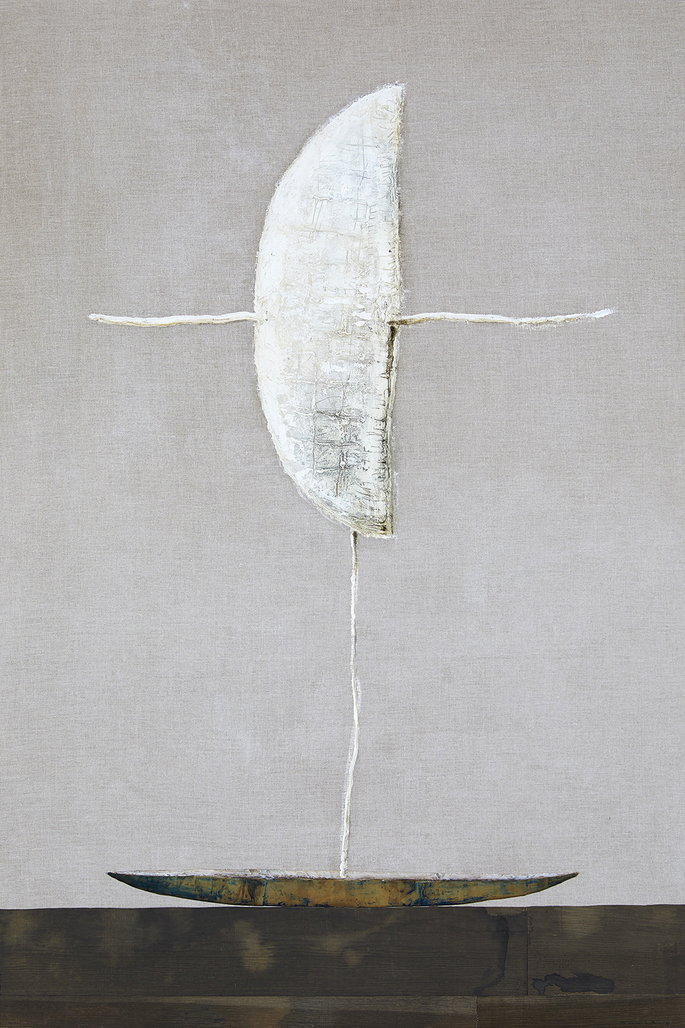 西班牙藝術家 Josep Riera i Aragó 的《White wing airplane on boat》則將航行、夢想與時間串接。白翼飛機以半月狀壓痕呈現如考古碎片般的磨痕,船身由木材與黃銅拼貼而成,在重力與漂浮之間保留詩意張力,象徵人類持續前行的探索精神。