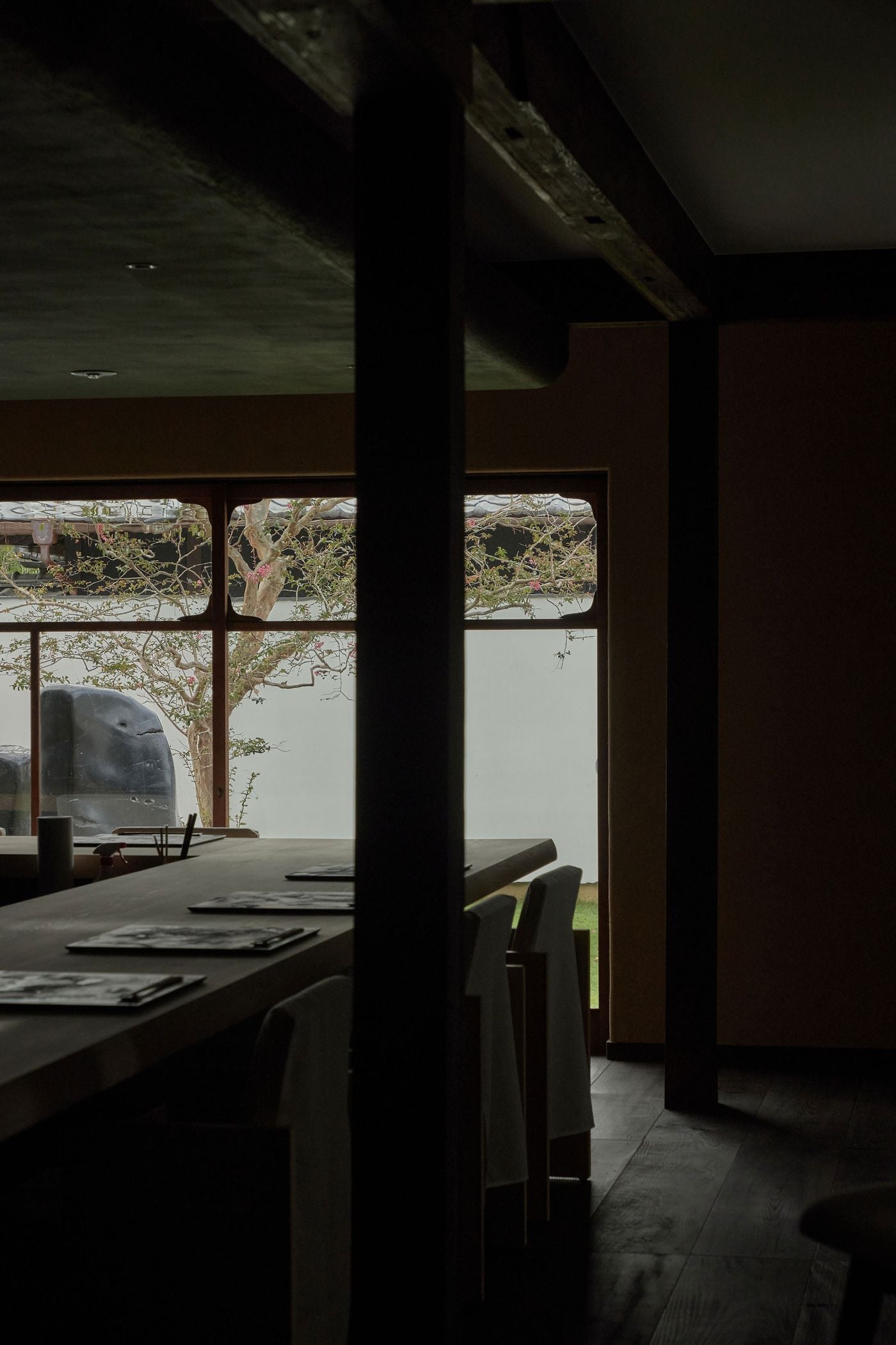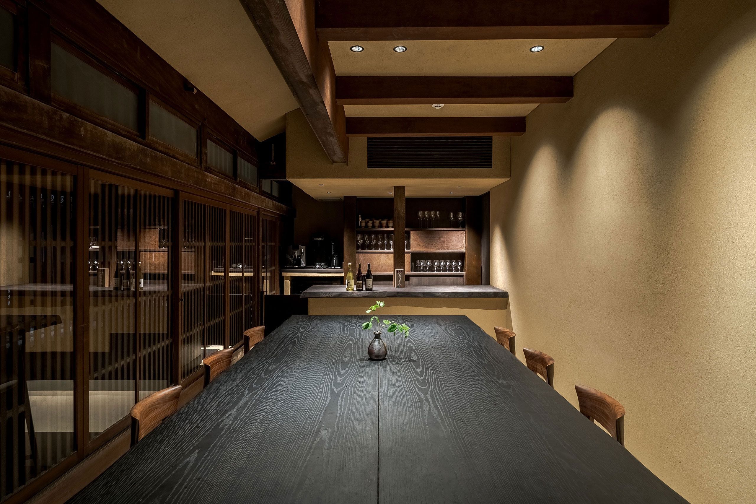 (Photography:Shinsui Ohara)餐飲同樣講究節奏與時序。料理取材自岡山的「微季節」,使用瀨戶內海海鮮、在地牛肉與鄰近農場的蔬果,醬油與高湯皆為自製。餐廳圍繞 U 形主廚吧台展開,空間親密,讓人專注於味道本身。到了夜晚,酒吧提供精選清酒與日本威士忌,盛裝於手工玻璃杯中,與建築質地相互呼應。