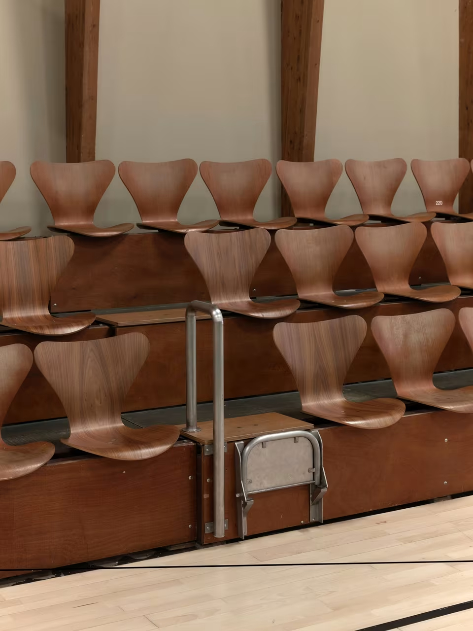 觀眾席沿著一側,座位採可拆分組合的設計,每個座位配備 Fritz Hansen 的 Series 7™ 椅子,一共有 232 張。許多椅子從 1973 年起便一直使用至今,雖然已經歷半個世紀的比賽、訓練與社區活動等,仍然穩固如初。