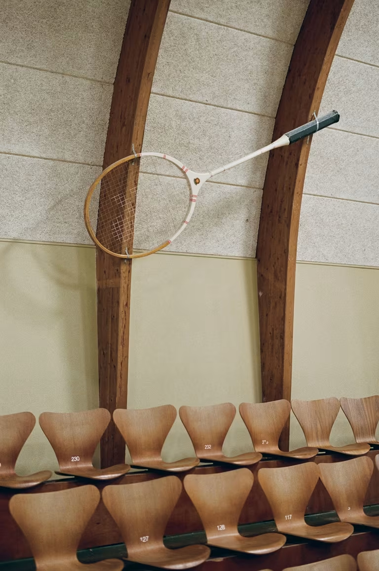 Series 7™ 成為整個羽球場館很重要的視覺語彙,與木梁、光影形成互相呼應的畫面,不論是遠觀、乘坐、撫摸,都有不同的美麗之處。它展示了時光流逝之下,經的起考驗的經典,也成為這座羽球館一代又一代選手在此揮汗訓練過程裡的重要見證人。