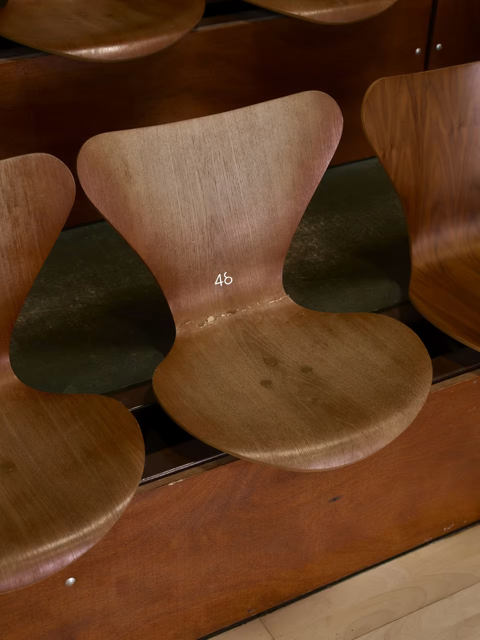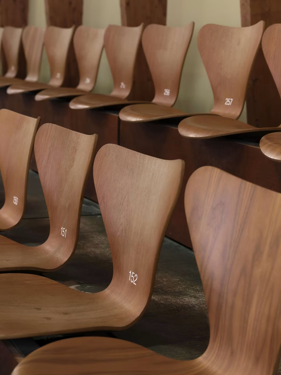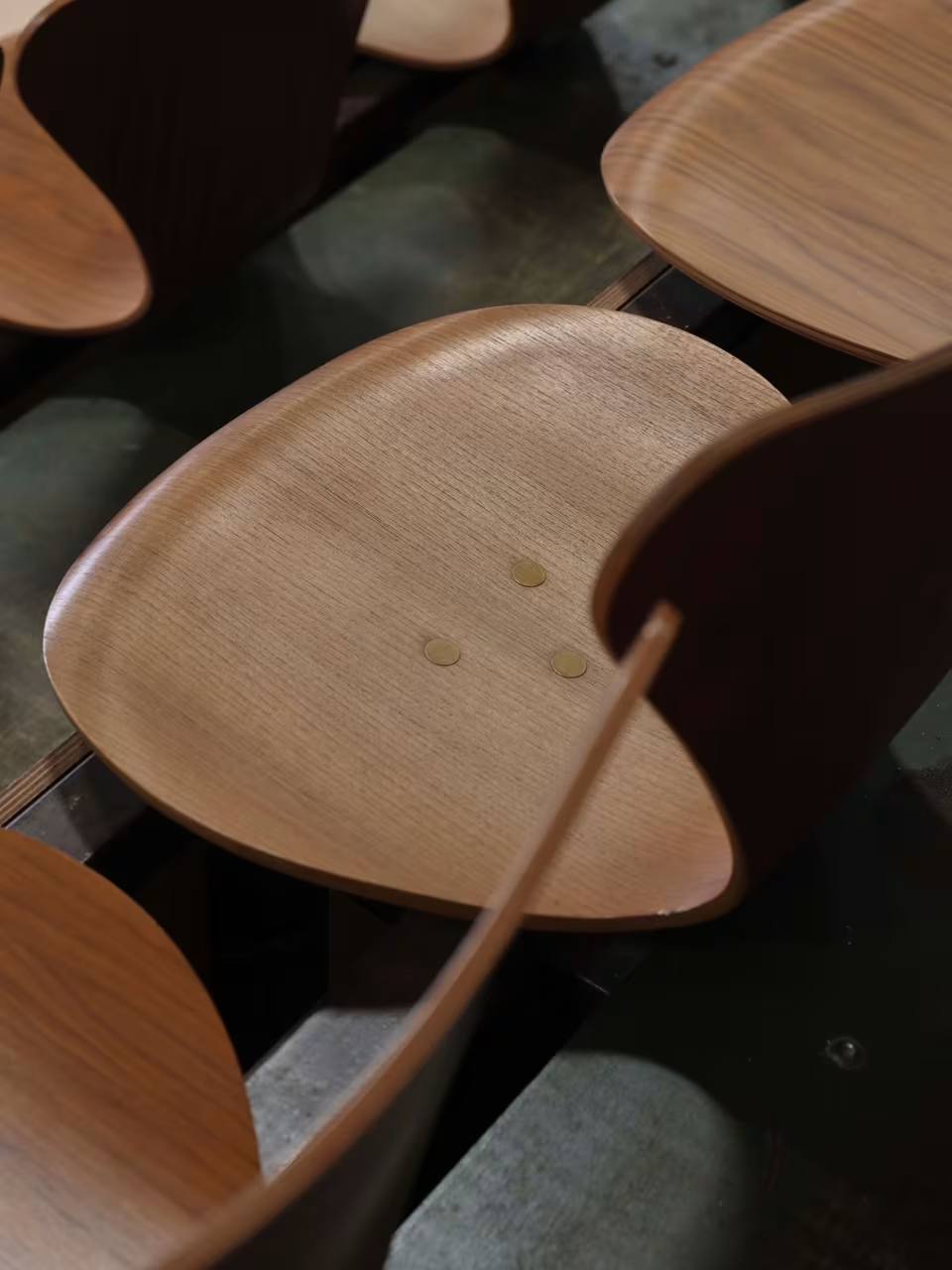這款椅子自 1955 年由丹麥設計師 Arne Jacobse 設計以來,一直是設計界的經典。它以簡潔流暢的曲線貼合人體工學,外型優雅,無論擺放在哪裡都自帶現代感。椅子以堅固的成型木材製作,輕巧又耐用。且 Series 7™ 可單獨使用,也可成排排列,像在利勒勒羽球館的觀眾席一樣靈活應用。透過 Fritz Hansen 的 ReNEW 計畫,椅子還能翻新、換零件或更新表面顏色,延續使用壽命。