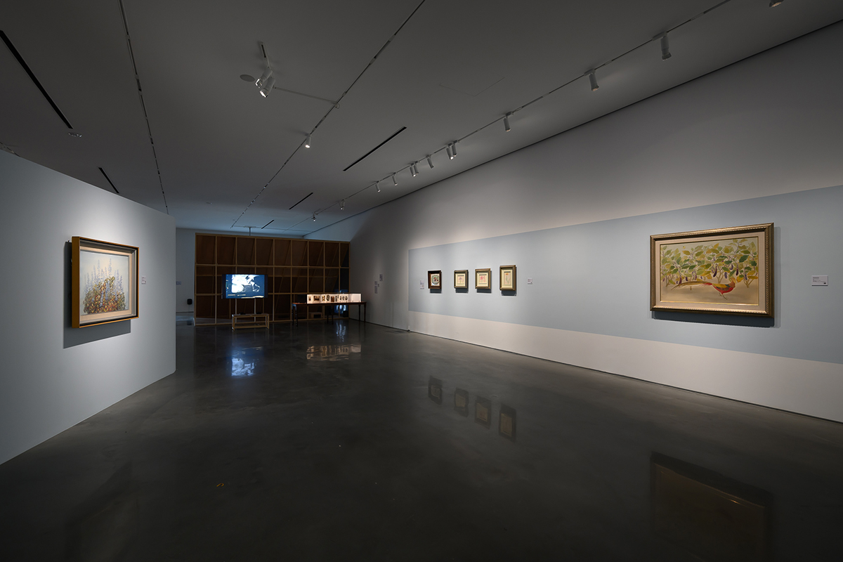 陳瀅如《聞山海》以聲音與氣味重新建構《山海經》的多物種世界;林之助少見的馬賽克作品《秋果》,展現他對自然細節的細膩觀察,也讓日常景象轉化為新的美學構成。