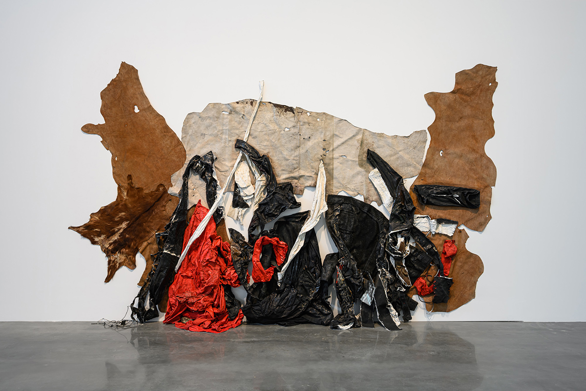臺灣前輩藝術家陳幸婉近三十年來首度公開展出的《大地之歌 No.1》,以衣物布料與皮革層層構成,指向生命循環與存在的痕跡;美國行為與錄像藝術先驅瓊.喬納斯(Joan Jonas)在《風中一線》中,讓紙質風箏漂浮空中,引導觀眾從不同角度觀看叢林、風與自然流動的意象。