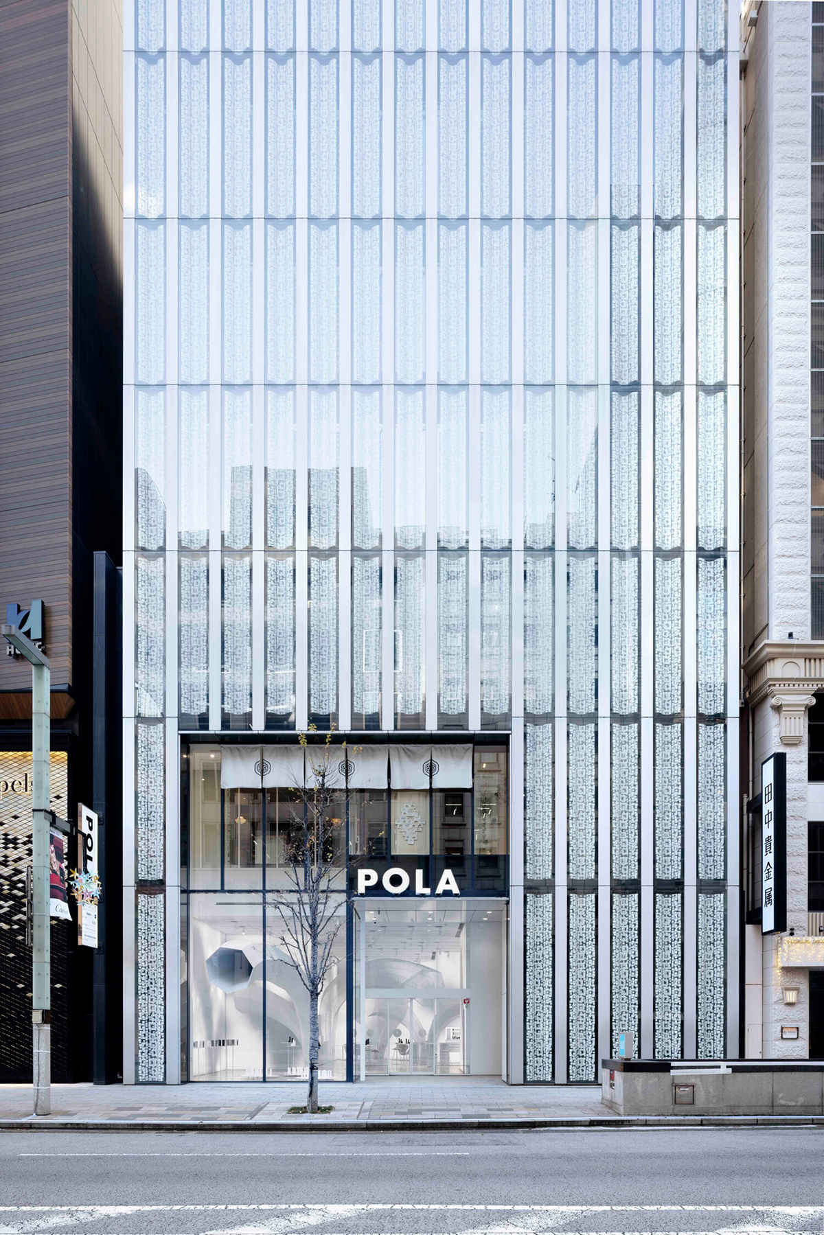 在妹島所勾勒的建築框架中,另外三位創作者的感官設計,進一步將空間層次延展。以細膩光影掌控能力著稱的照明設計師豐久將三,於 POLA GINZA 中面對的是「創造影子,而非光」的矛盾命題。他透過光與暗之間密不可分的關係,讓牆面不斷生成變化的影像,我們在觀看的同時,也以身體感受光的存在與流動。