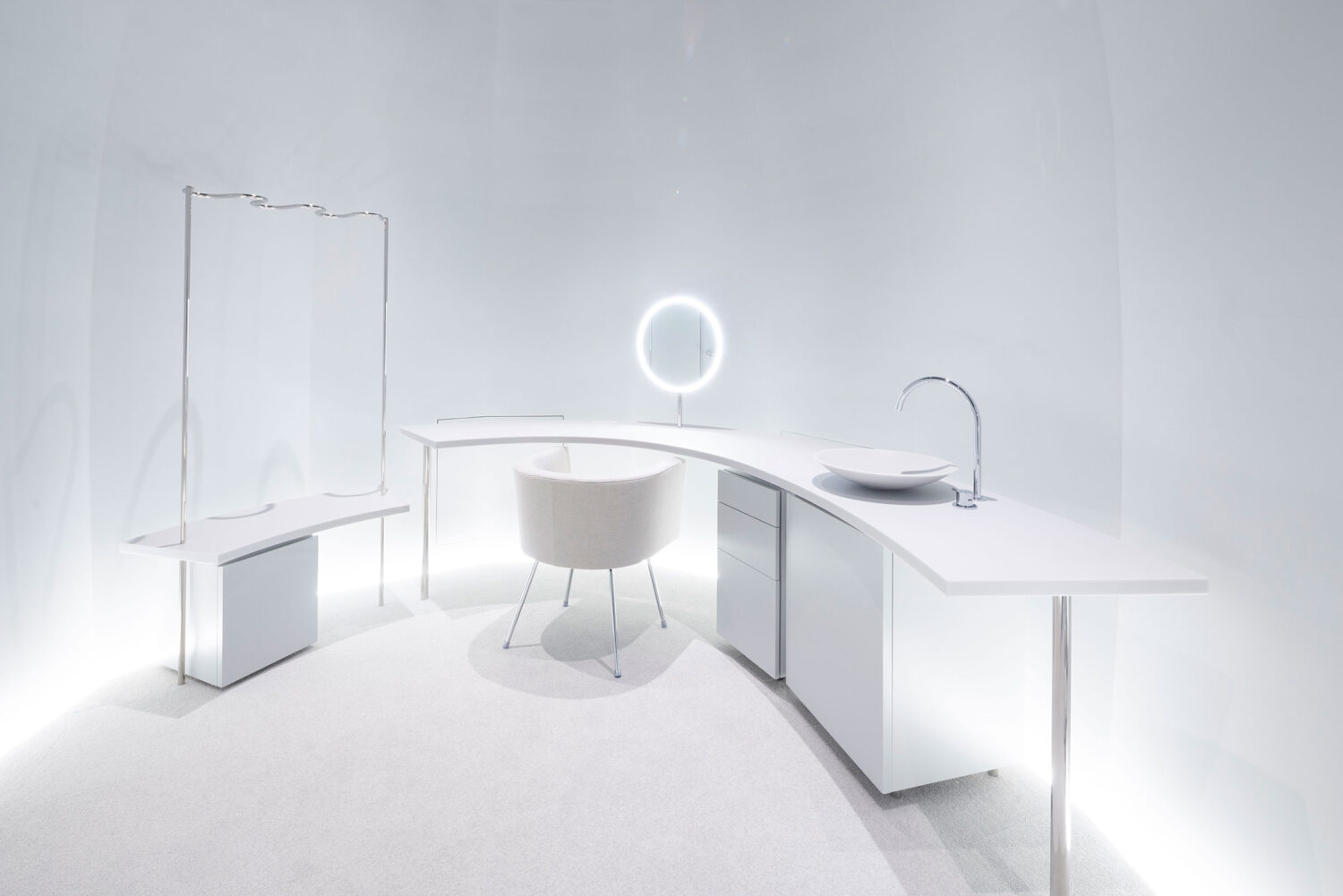 療程結合 POLA 化成工業的獨家技術「Resense Scan」,透過臉部動態影像分析當下狀態,將肌膚與身體感受視覺化,並從貼近情緒與身體感覺的諮詢開始,延伸至臉部與溫感身體護理。而除了空間,包廂內的梳妝台、衣架等家具,也皆由妹島和世量身設計,使建築語彙延續至最貼近日常使用的細節,讓護理體驗在空間層次上更加完整。
