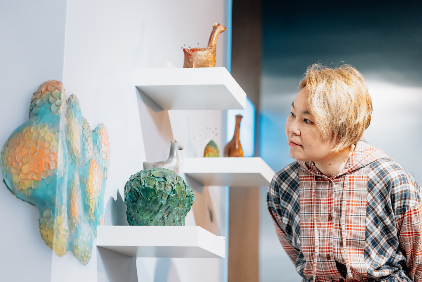 夏愛華:我讀雕塑系四年級時,有一位日本漆藝老師來台授課,當時全班有一百多位學生中,只有我不會對漆樹汁液過敏。見狀,老師便邀請我前往沖繩縣立藝術大學當他的研究生。