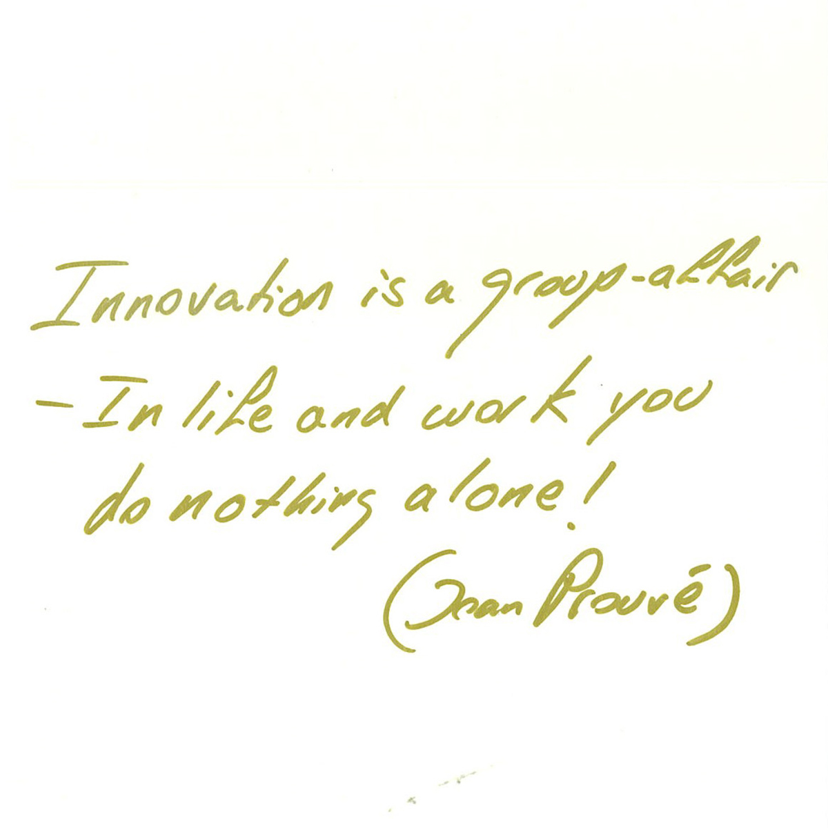 「Innovation is a group affair — in life and work, you do nothing alone! (Jean Prouvé)」