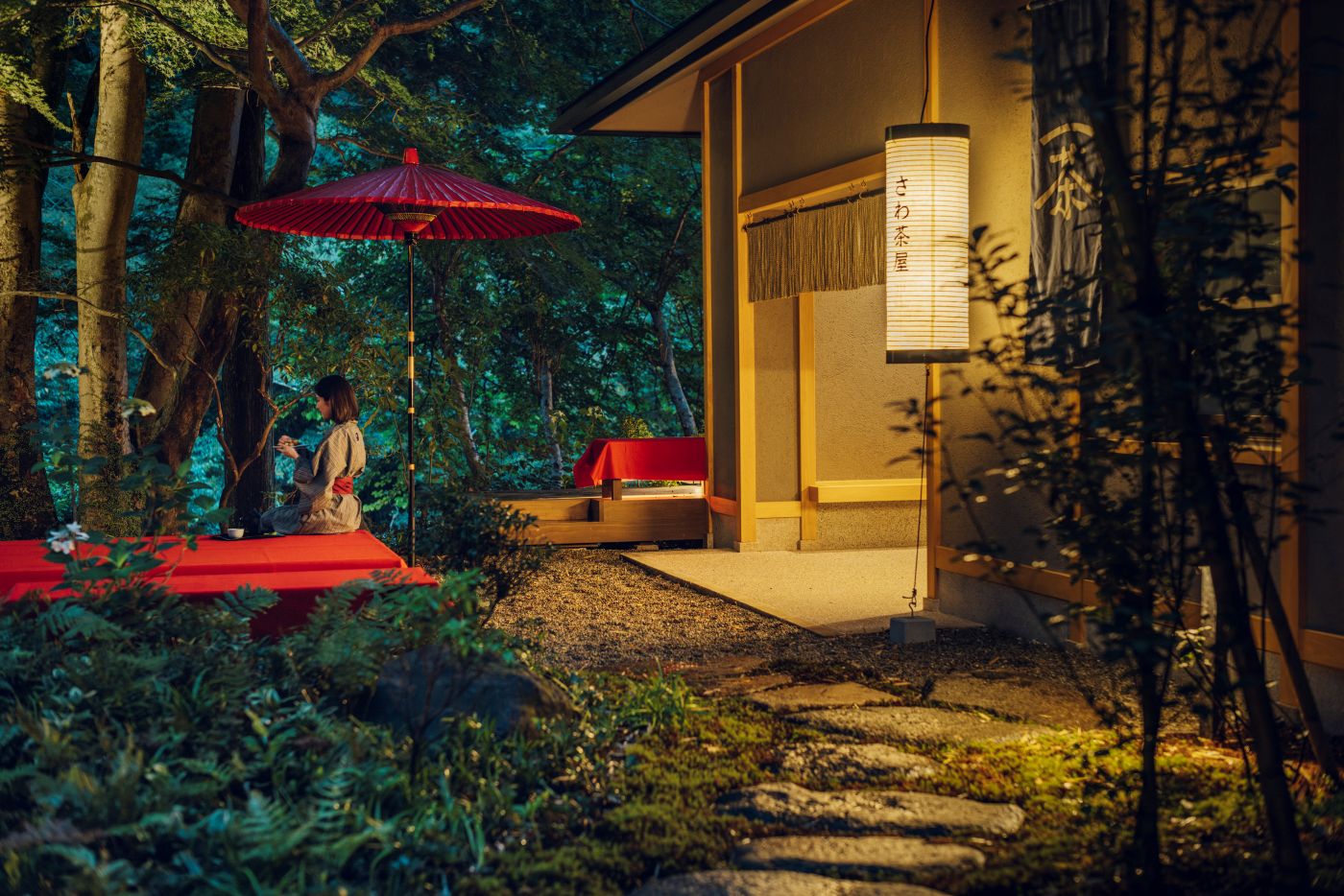 茶屋名稱「 SAWA 茶屋」融合了三個意 涵:「澤 (SAWA)」(須雲川的川澤)、「さ わさわ (SAWASAWA)」(樹葉搖動的沙沙聲)以及「茶話」(聊天)。界 箱根希望這裡能像過去旅人在茶屋交流一樣,成為旅人與重要的人加深情感的場所 。(photo credit:星野集團 界 箱根)