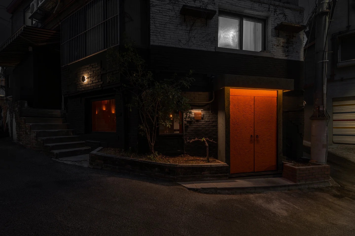 以多元文化和異國氛圍聞名的首爾梨泰院,向來是這座城市最具包容性的街區之一,這裡異國餐廳、時尚潮流店鋪林立,音樂與夜生活沿著街道層層展開,形塑出一種開放而自由的城市氣息。然而,當人們從熱鬧的街口轉身,走進節奏放緩的街區邊緣,在一處蜿蜒街巷的斜坡轉折處,一扇暗橘色的大門靜靜佇立,牆面上宛如月光般柔和的壁燈灑落微光,散發著幽微而靜謐的氛圍。這間專賣韓國傳統酒的酒館「Horongbul」(호롱불),靜靜地座落在喧囂之外,像是都市中的一處隱密居所,等待著那些渴望片刻寧靜的人們循著微光前來。