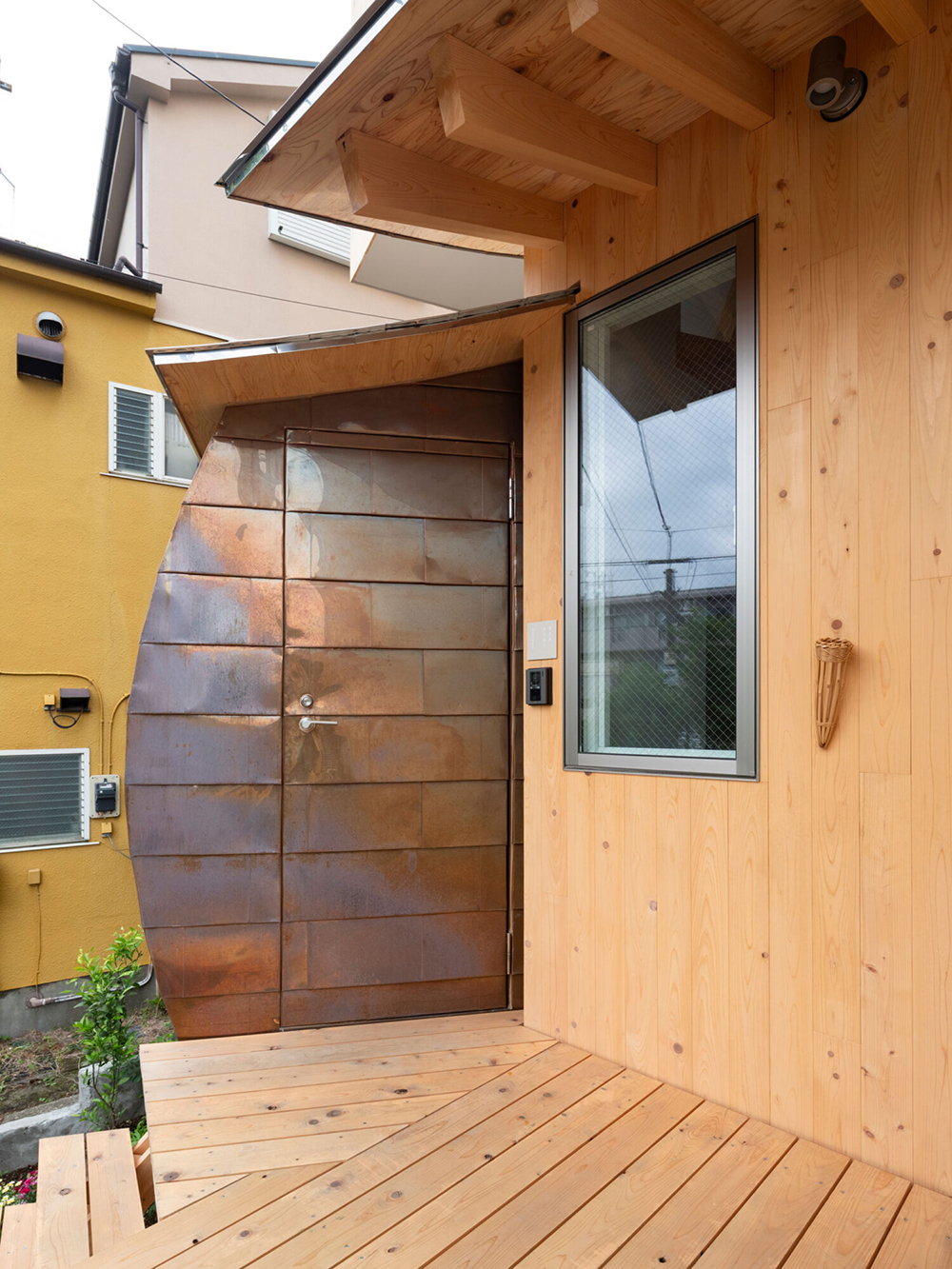 走進東京練馬區一處靜謐的住宅街區,一棟位於方正街屋之間的不規則量體,立刻抓住過路行人的目光。凸出的金屬曲面與木質平面交錯堆疊,輪廓宛如一棵正在生長的巨樹,又像是《霍爾的移動城堡》中隨時會轉動的奇幻建築。這棟名為「綠之屋」的住宅,彷彿存在於虛擬 RPG 遊戲世界,卻以有機而真實的姿態,靜靜佇立於東京的日常街景之中。