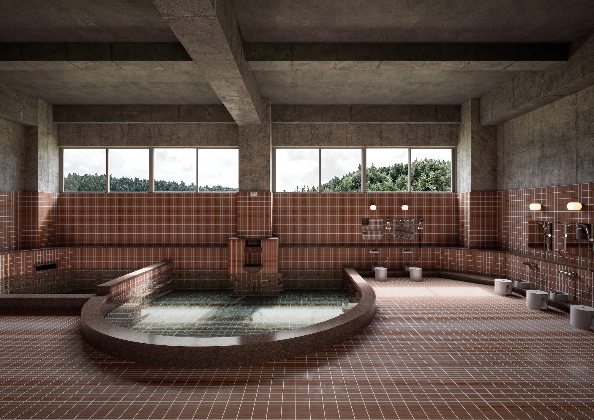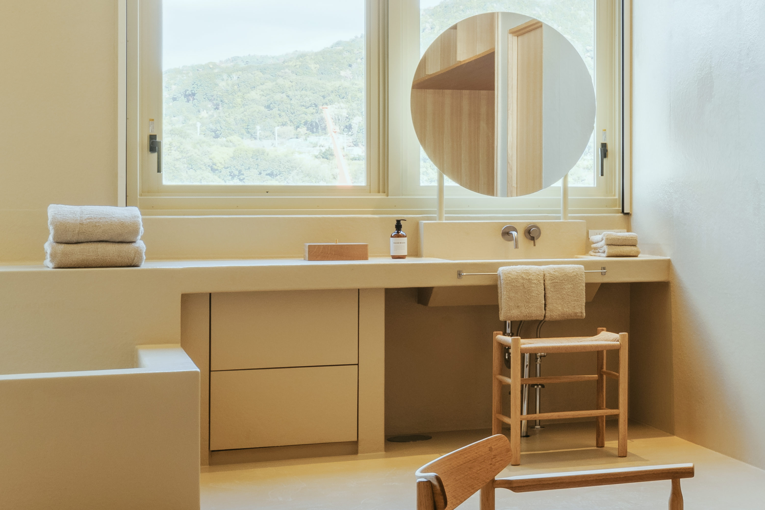 答案不是再造一間更大的飯店,而是將原本被集中於同一棟量體中的機能拆開:住宿稱為「島泊」、餐飲成為「島飯」、溫泉則是「島湯」。三者彼此獨立,又能夠自由進出,到訪的人們可以依照自己的節奏,選擇停留的方式,可能只是下船後泡個湯,也可能因一頓飯而對島產生興趣,或在入住之後,慢慢走進島的日常。