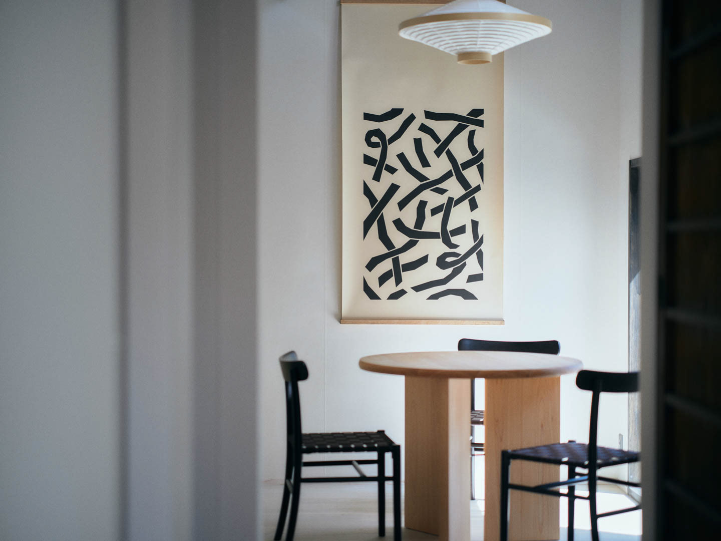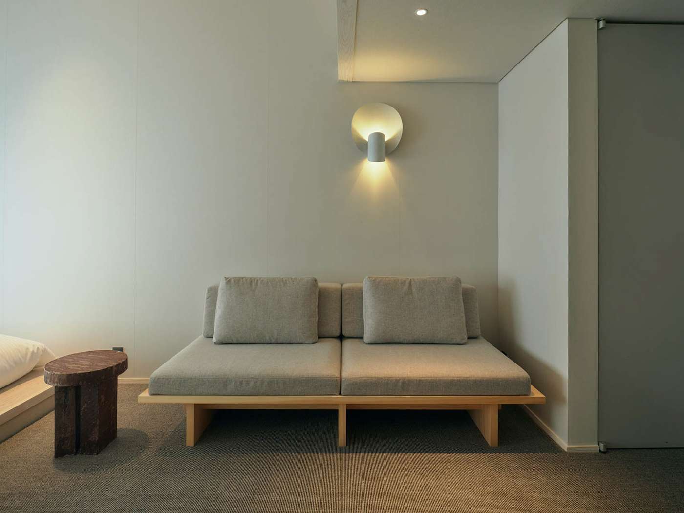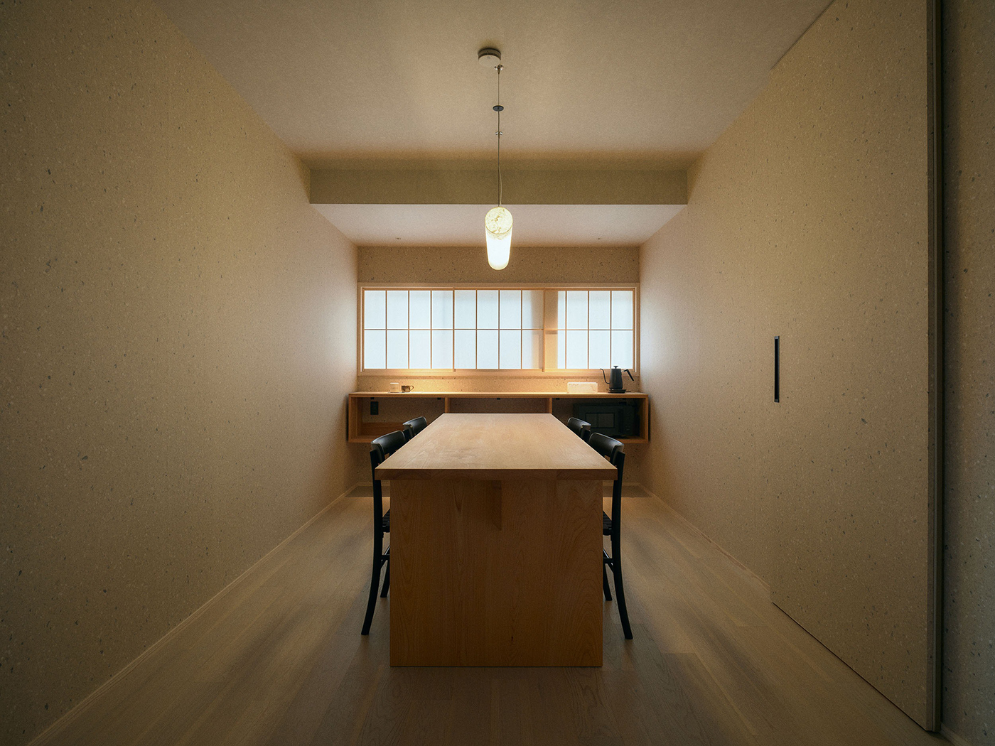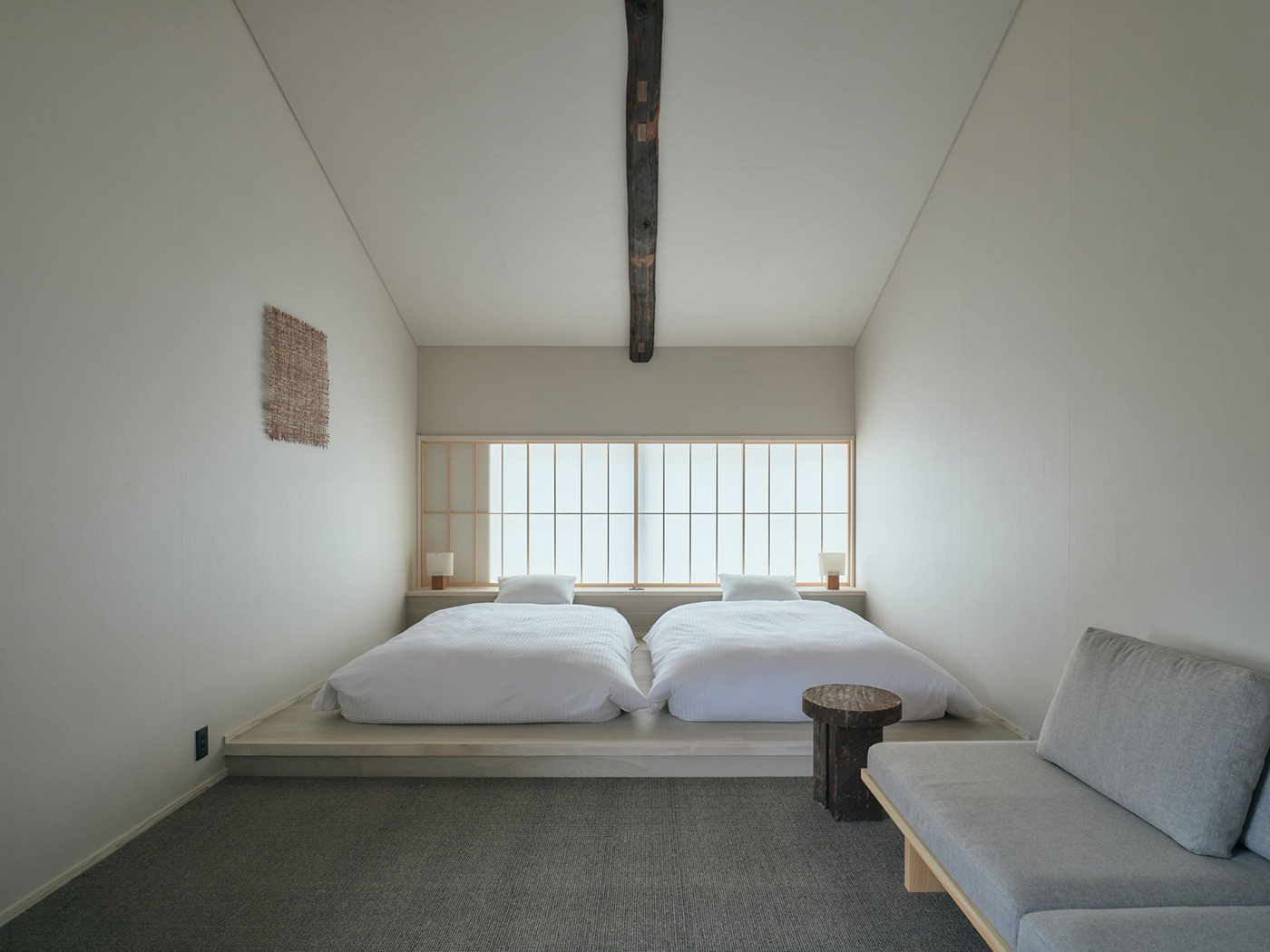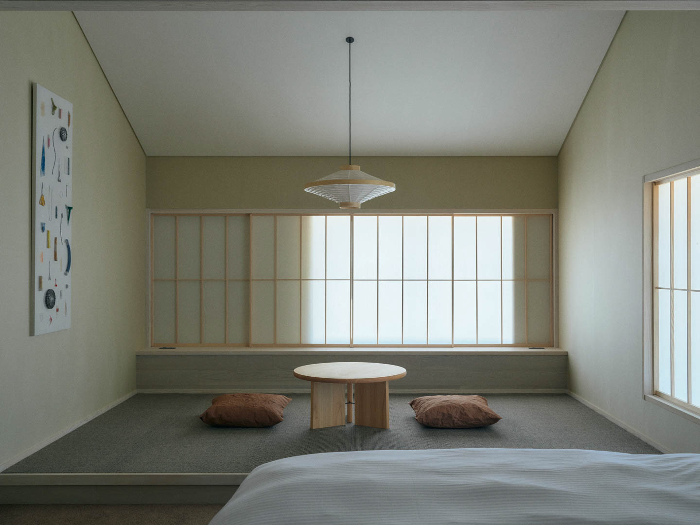 由舊倉庫改造而成的「雁皮」,則是一棟可整棟包租的獨立空間,與其他客房保持距離,適合希望安靜停留的旅人。挑高的天井帶來開放感,空間中搭配以稀有雁皮紙結合平面設計的藝術作品,使整體氛圍顯得沉穩而內斂。