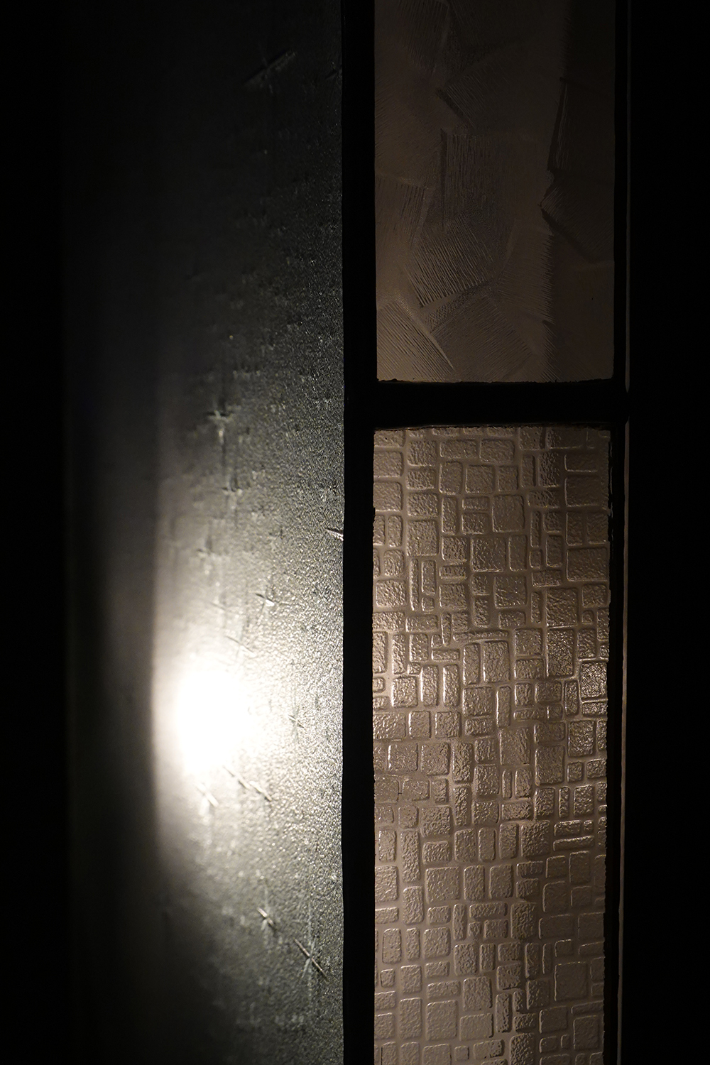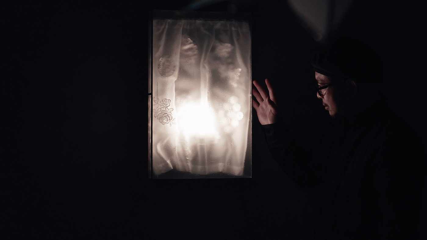 系列在動線中以《棲居》為開頭。張博傑將大稻埕老蕾絲縫製而成的窗簾結合昭和時期壓花玻璃,再現他在日本巷弄中所見的家屋窗景;那道溫潤而微弱的光,既是家的意象,也是心靈最初安放之處。