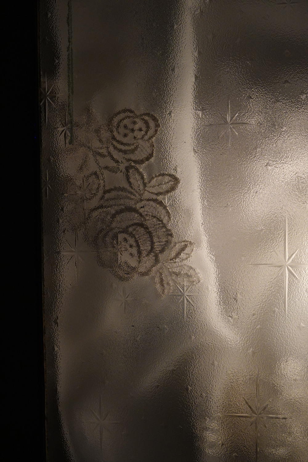 《憶往之間》則以霧面與壓花玻璃的層疊,讓花紋在清晰與模糊之間隨步伐游移,彷彿記憶在時間中反覆被重寫;兩側透明玻璃映現台灣窗花的反射結晶,使過往與當下在光影裡彼此交疊。延續《入林》山林意象的《採擷》,將玻璃葉片收納進燈箱中,在光線映照下呈現不同層次,如同旅途中被拾起的片段風景。