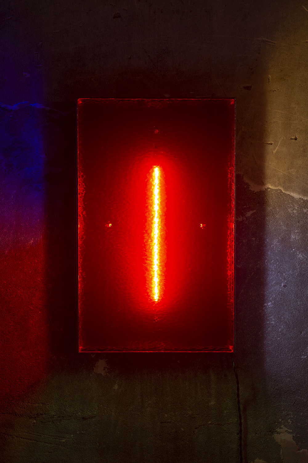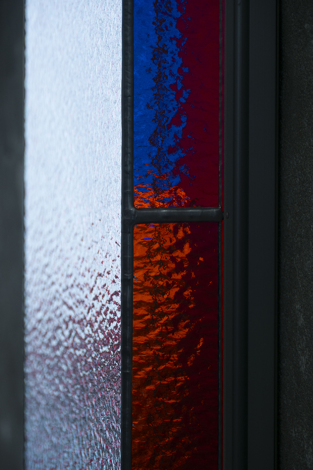 在《煦日》中,來自台灣代工時期的老玻璃浮現著雲霧般的紋理,透光瞬間宛若登山迎向日出的悸動;《信條》運用早期教堂彩色手工玻璃,使光在色彩之中獲得神聖性的指向,連結材料記憶與信仰經驗;而《甘泉》以歐美手工水波紋玻璃持續流動的表面質地,回應生命不斷湧現與更新的狀態,進而讓觀者回望自身內心,回到平靜的同時也展開一場與自己的對話。