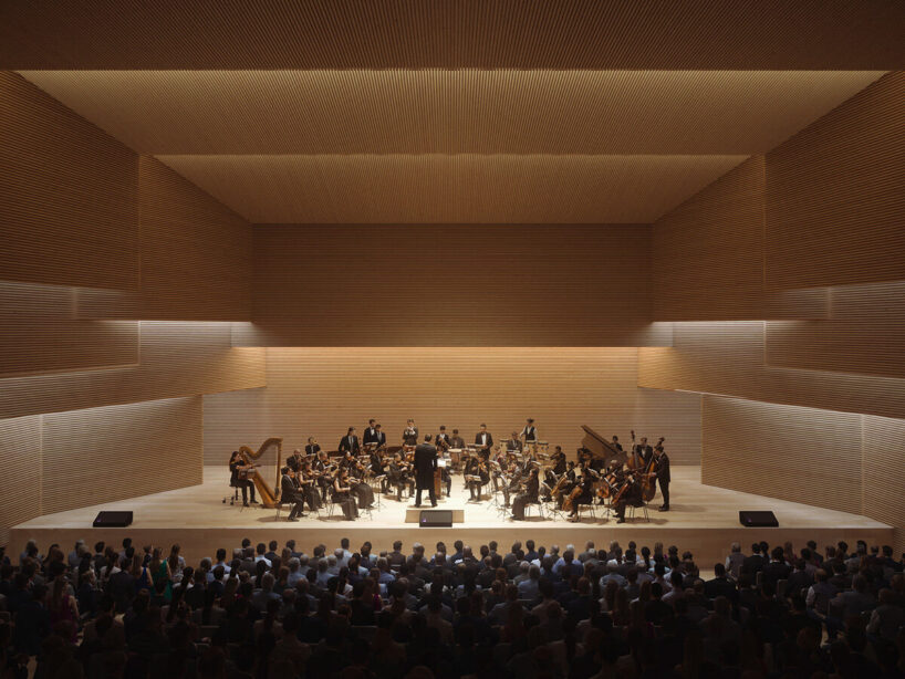 (Photo Credit:Kengo Kuma & Associates)圖書館內部布局帶來很多樣的使用場景而不破壞整體感。兒童區融入階梯書架與座位,低矮平台既是閱讀角落,也可以成為即興表演舞台。安靜的自習室則以細網隔屏區隔,視覺連續又保有私密感。大型活動廳置於螺旋之中,木質溫暖的空間讓公共活動自然融入日常圖書館生活。在表演空間,懸吊木元素組成密集的天花網格,調節光線與聲音,微妙展現螺旋幾何的延伸,牆面與陽台邊緣的細微變化,讓建築的結構語彙清晰可見。