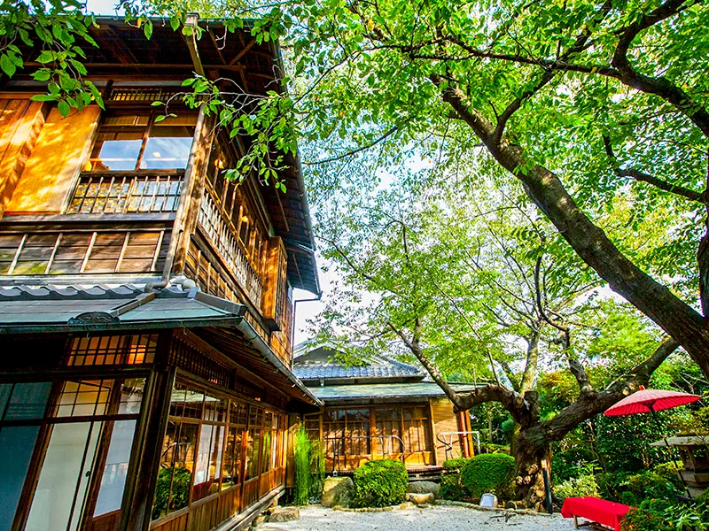 位於神戶住吉區,曾被譽為「日本最富有村落」,是大正至昭和初期上流社會富商聚落的代表。宅邸融合西洋與日式元素,外觀磚石與木造結構並存,屋頂與陽台雕刻精緻;內部以高天花板、華麗木作、壁畫、彩繪玻璃與精緻家具呈現奢華格調。庭院設計細膩,小徑、假山與池塘營造寧靜景致。參觀時可近距離欣賞建築工藝與室內裝飾,體驗大正至昭和時期上流生活的優雅氛圍。