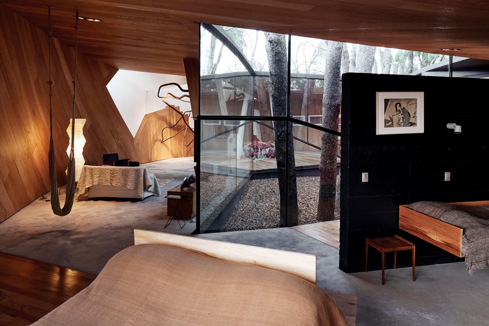 這棟房子靈感源自 勒·柯比意(Le Corbusier) 的抽象畫作,整體造型充滿錯落的尖角、斜面和突出的懸臂結構。12 公分厚的鋼筋混凝土牆圍繞著中央庭院,形成天窗、曲線牆與剛硬的直角交錯。室內則以溫潤木材鋪陳,和冷硬外觀形成微妙對比。Radić 認為建築不只是居住空間,更是「可感受的藝術」,這棟房子正好將視覺藝術轉化為可觸摸、可行走的三維結構。