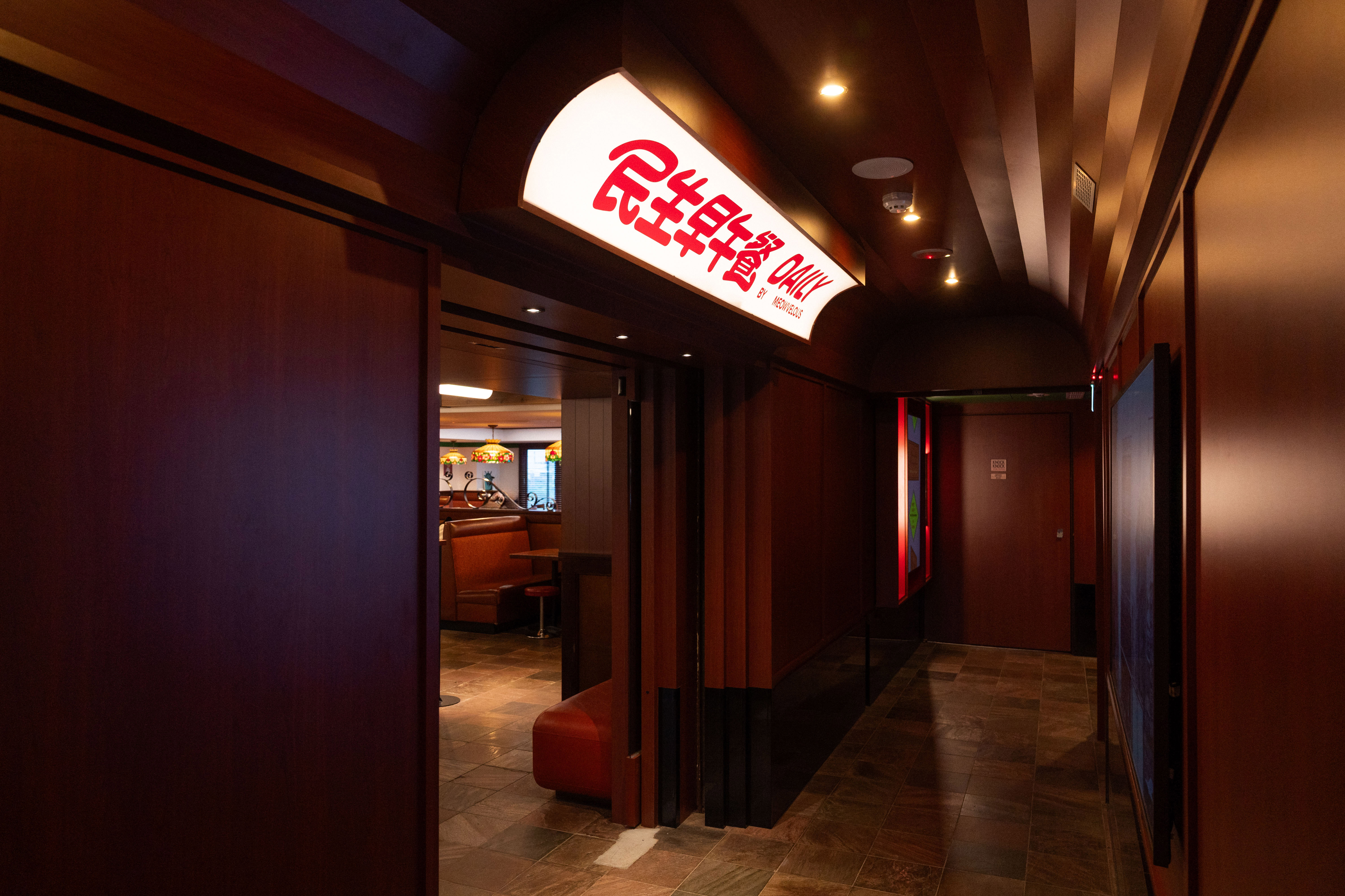 電梯門打開,迎接的是一段穿廊。這個設計是刻意的,從進門到入座,那幾步路製造出一種微微的「進場感」,像是走進飯店的某個廳,讓人在還沒坐下之前,就先換了一種心情。