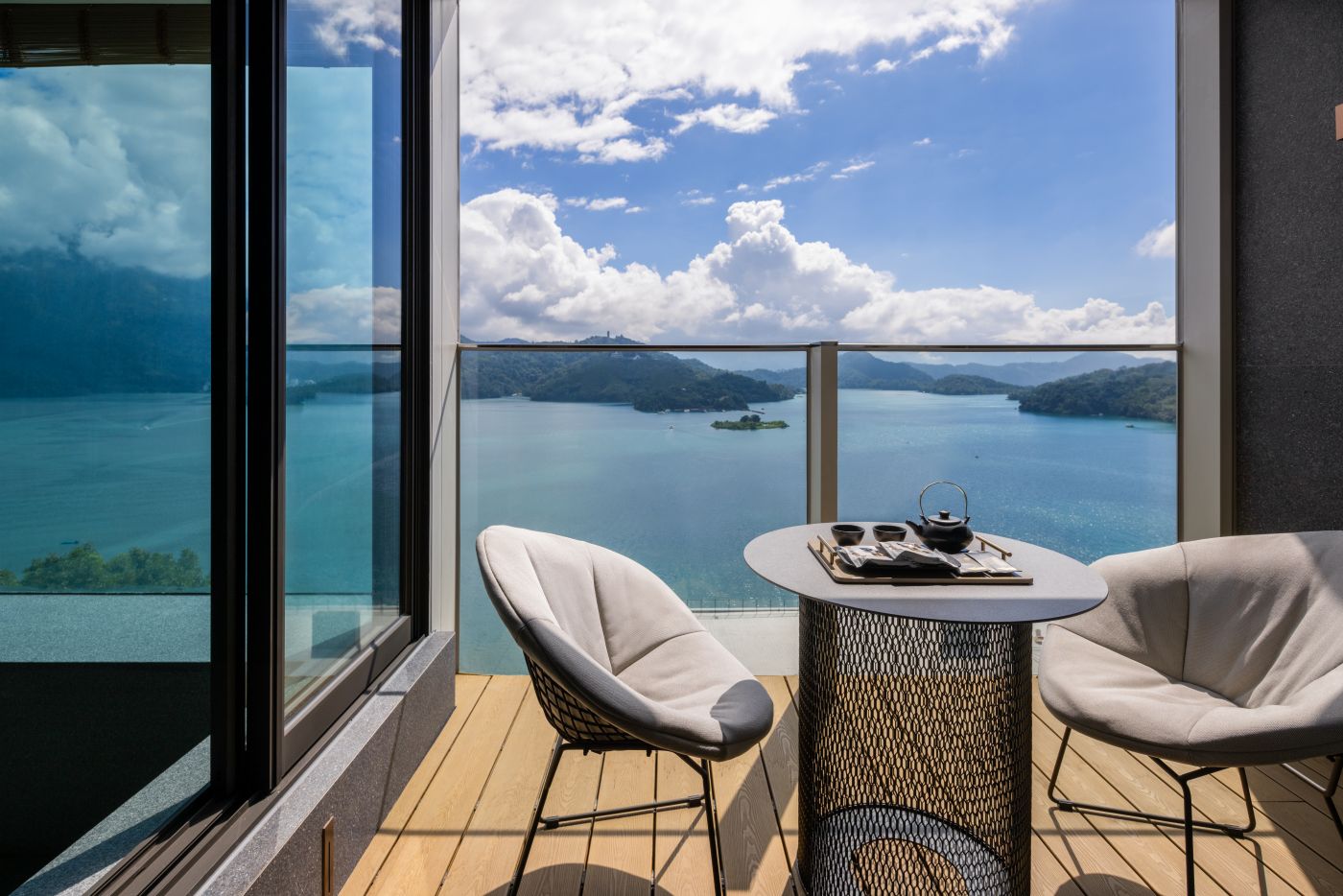 漢來日月行館位於日月潭涵碧半島制高點,坐擁270度湖光山色美景。館內則以樓層為單位,透過藝術作品的展示呈現如畫廊般的美學體驗。(photo credit:漢來日月行館)