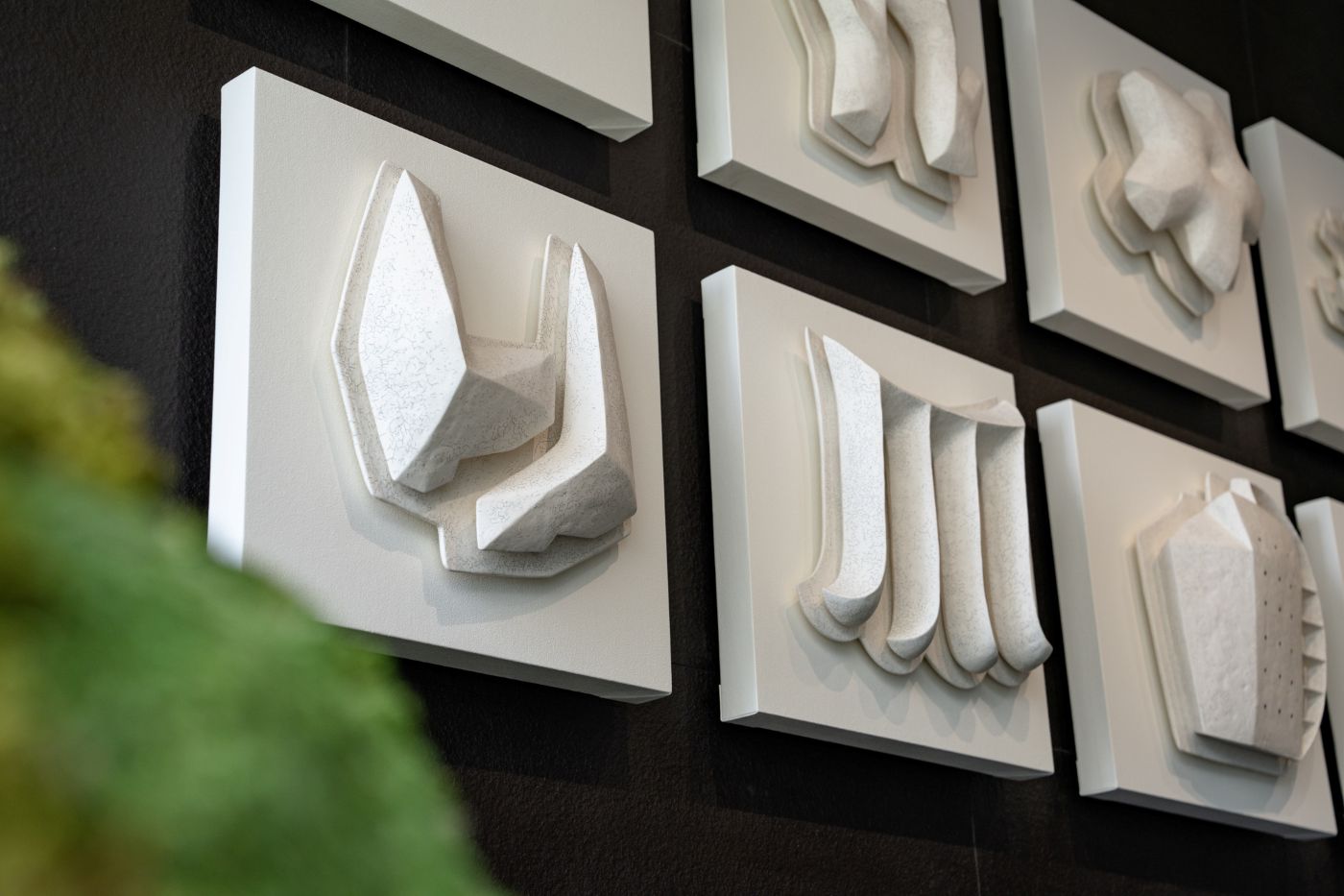 另一件新收藏的作品為朱芳毅的〈日月十二象形〉,裝置於飯店12樓。朱芳毅以日月潭的地景與人文記憶為靈感,透過「現代象形」的手法,將具有歷史意義的在地意象轉化為抽象立體物件。