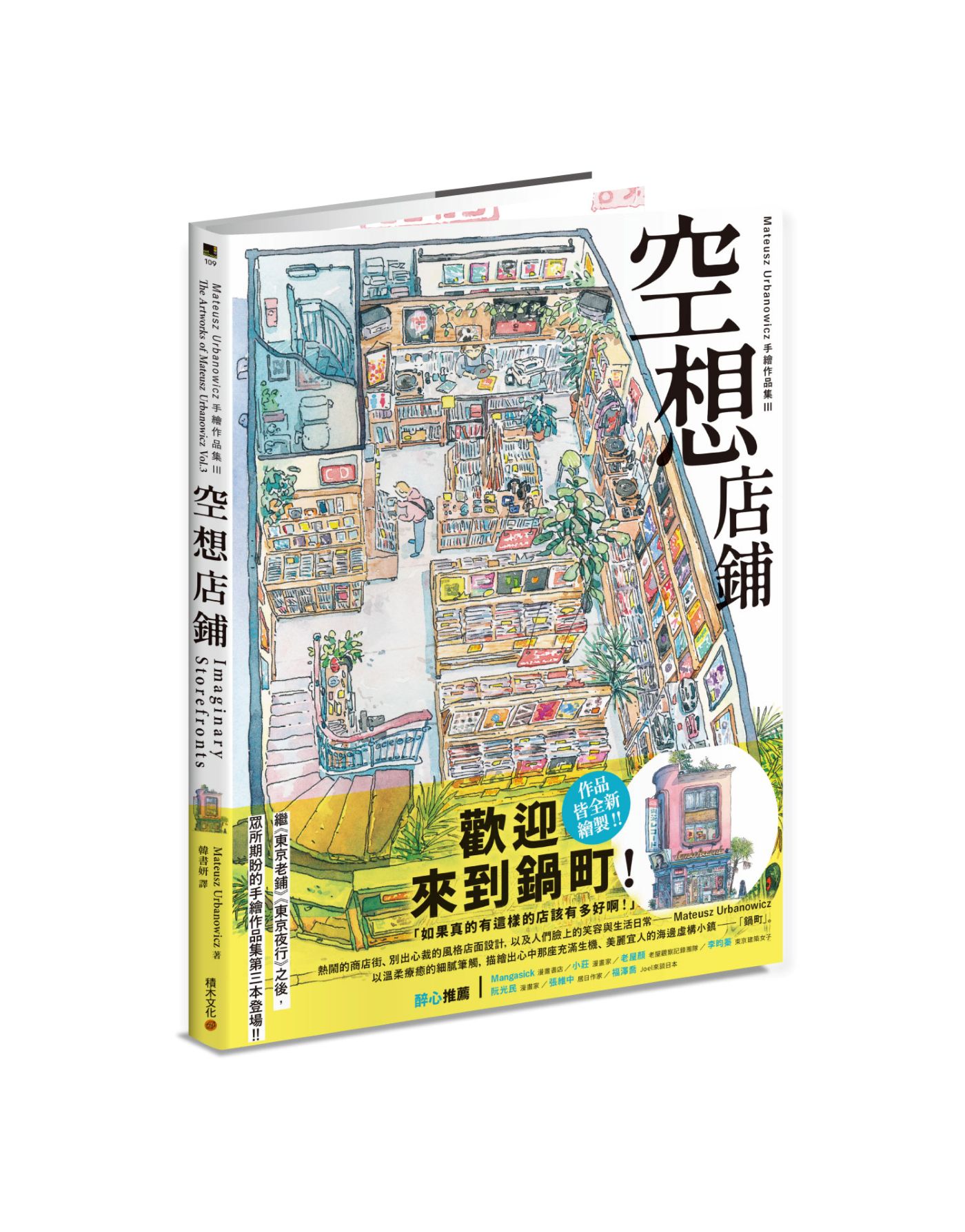 這本《空想店鋪》,是 Mateusz Urbanowicz 歷時五年研究與開發的虛構計畫:以真實街景為基礎,以想像為方法,在一座假想的海邊小鎮裡,留下那些正在消逝、或從未存在過的日本店鋪。