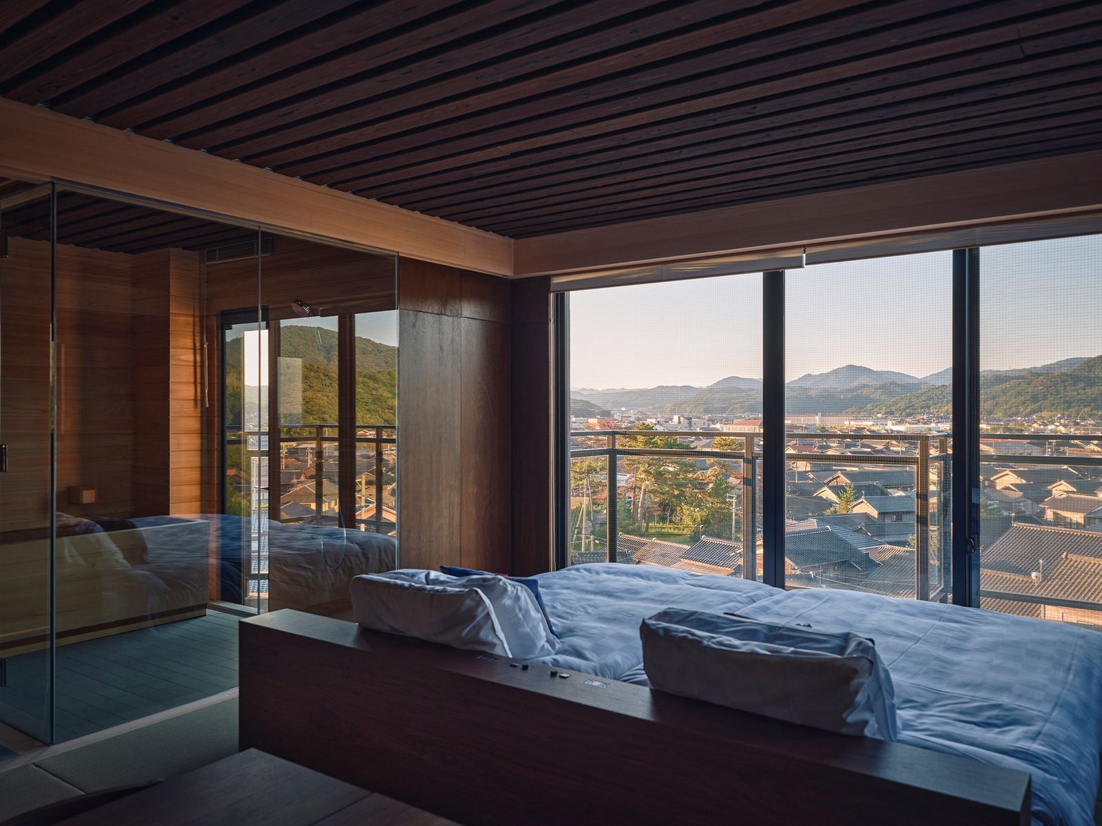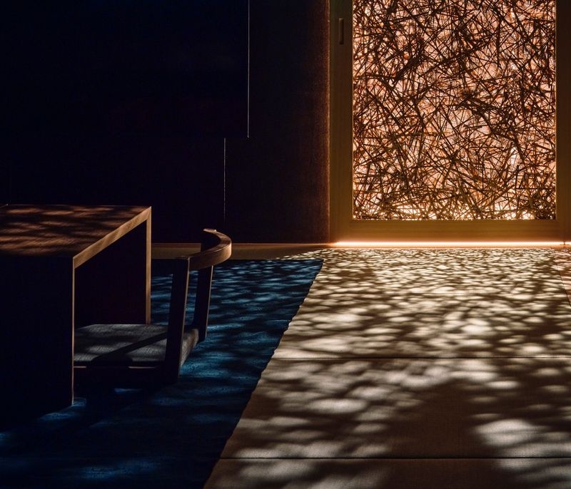 (Photo Credit:Takuya Seki)因為北側海面會均勻反射自然光,所以也減少了日間照明需求;高斷熱、高氣密搭配地暖系統,讓全年入住都能感到舒適;客房溫泉可個別控制,也更節能。夜晚透過牆上木條內嵌間接照明,維持柔和而穩定的光氛圍。