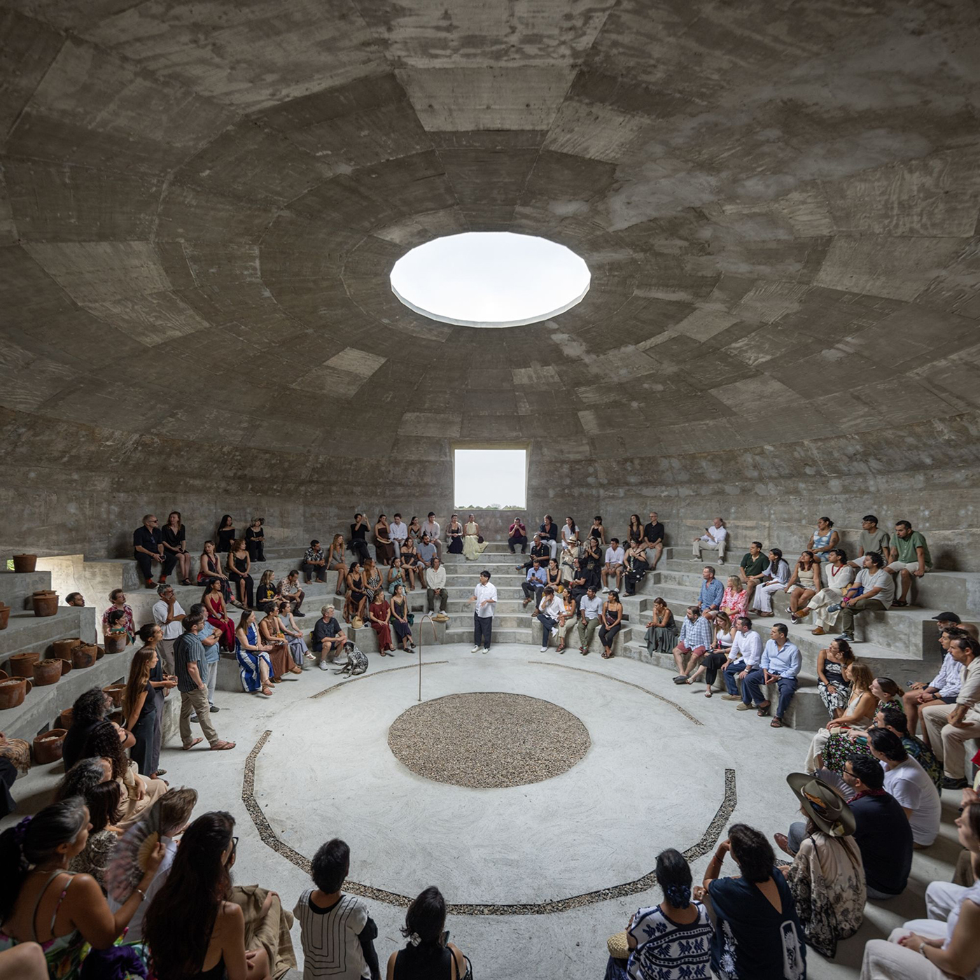重松象平形容這座建築是一個「孕育食物與社群的孵化器」,沿海社區居民、藝術家與訪客在此齊聚交流,工作坊、課程與各種社區活動在裡頭發生,就算只是坐在台階上,看著光線從天窗慢慢落下,也能感受到空間帶來的安定與連結。食物、藝術與自然在蘑菇館裡彼此交會,回應著 Fundación Casa Wabi 最初的理念:讓藝術真正走入生活,成為能被感受、被分享、也被實踐的日常,如同菌絲在地底悄悄蔓延,看不見,卻也將不同的生命緊密地連結在一起。