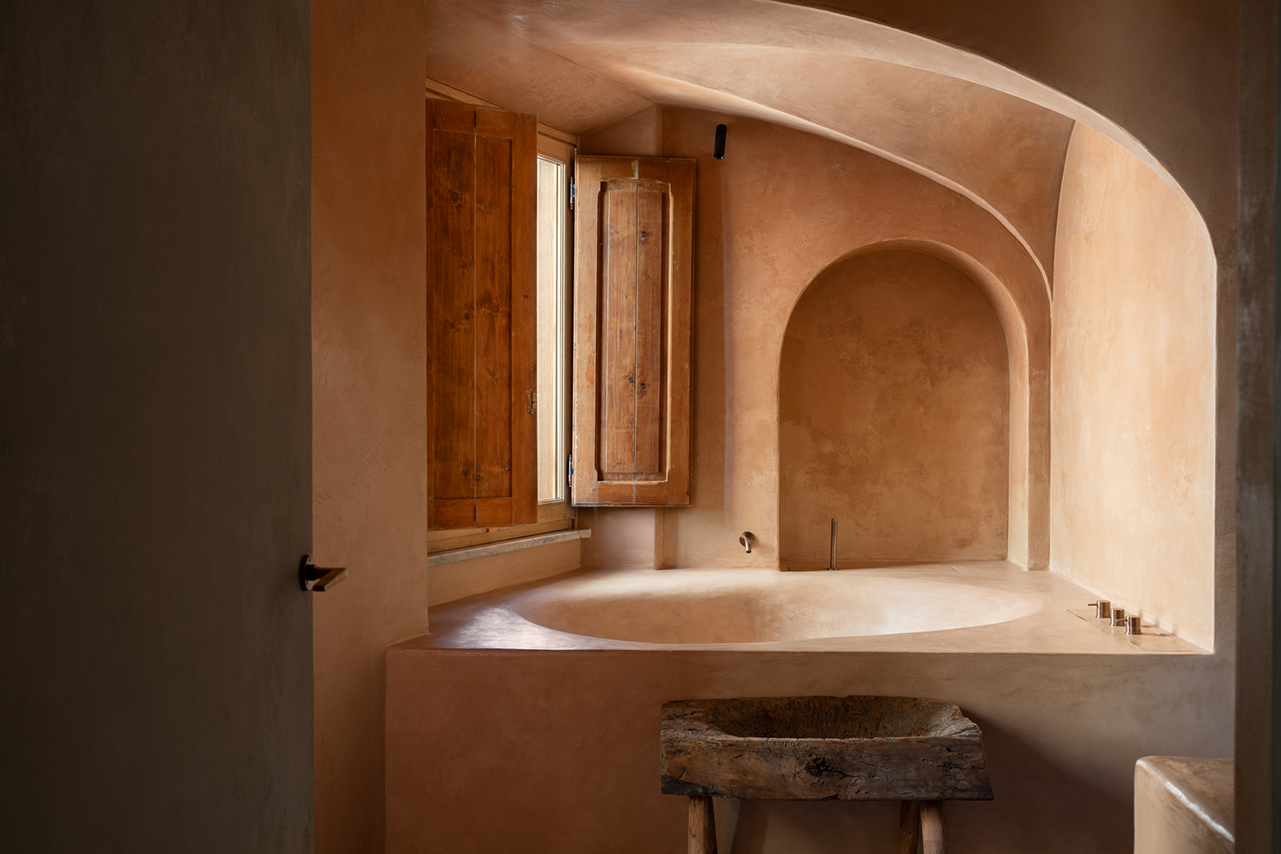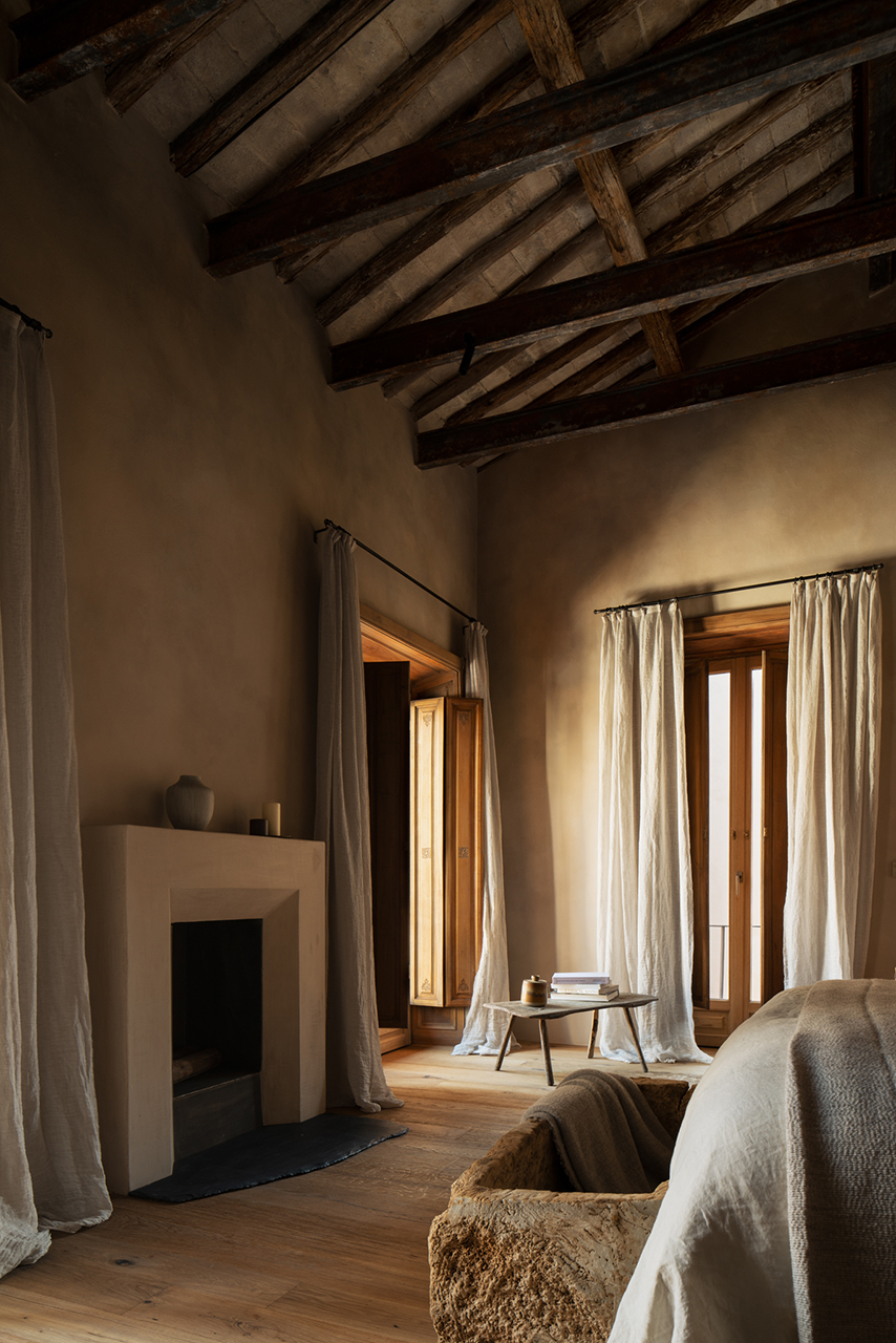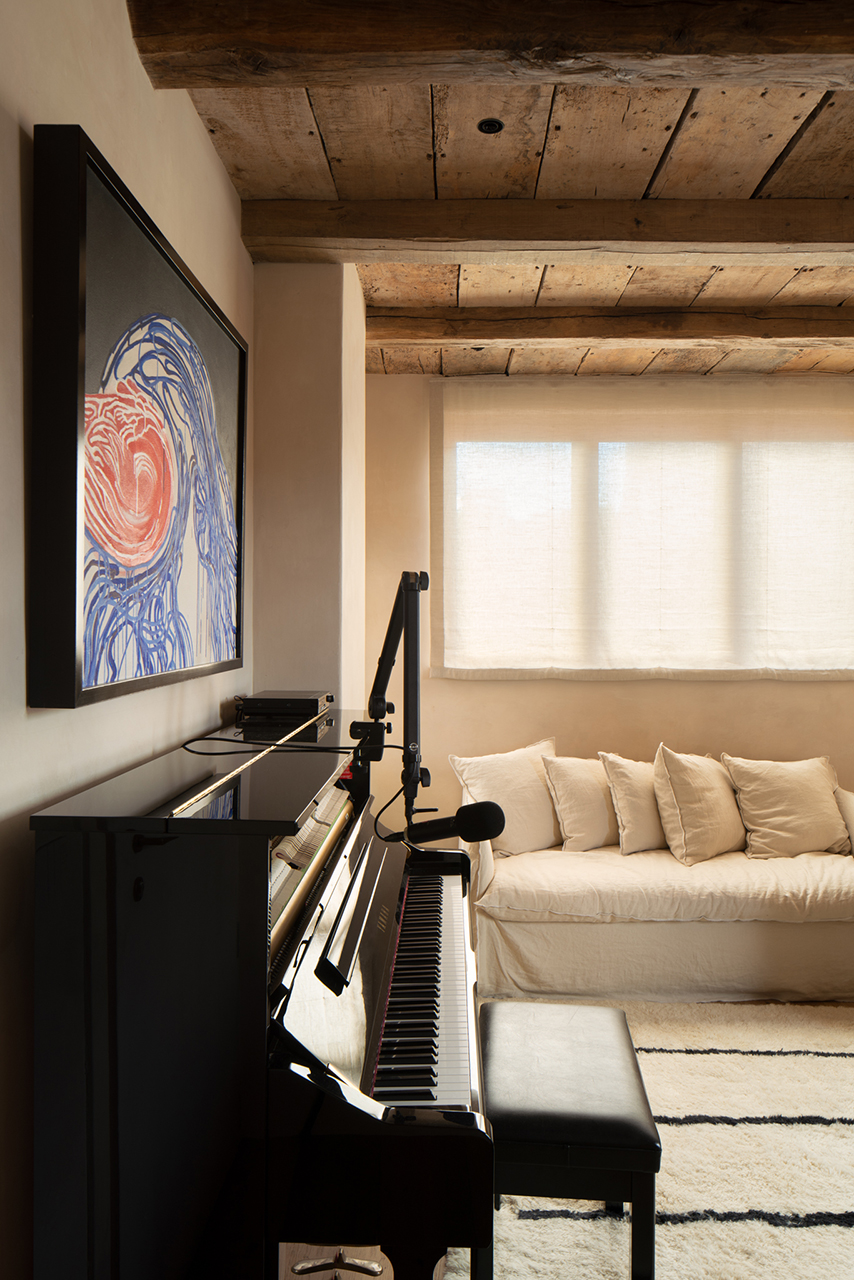 空間的翻新請到在地建築師 Serena Mignatti 操刀,她以日本侘寂美學為設計的核心精神,同時呼應托斯卡尼傳統對天然材料與手工技藝的珍視,推崇一種來自時間痕跡的誠實之美。她希望在被歲月磨蝕的過往之美與當代清晰感之間取得平衡,讓材料各自帶著故事,也讓空間呈現和諧、鮮活而恆久的狀態。Serena 與 Thom Yorke 夫婦達成共識:創造一個真正的家,一個能滋養、安放靈魂的居所。