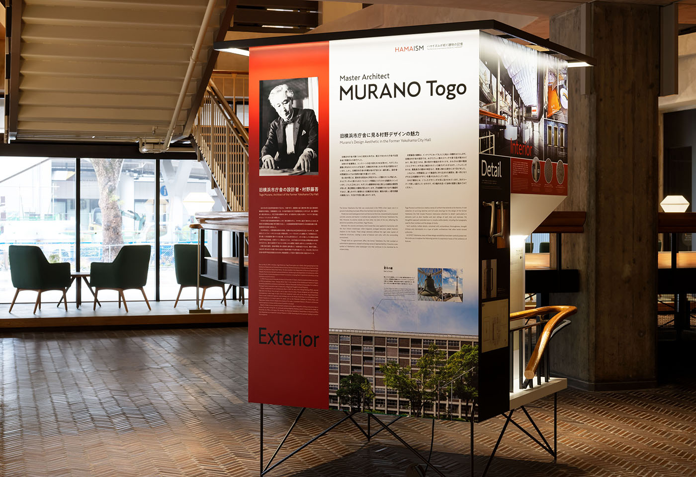 1959 年竣工的舊橫濱市政廳,是村野藤吾為橫濱開港 100 週年紀念活動所設計的獻禮。建築外觀以清水混凝土為骨架,嵌入深褐色磁磚,形成凹凸有致的立面表情;行政棟與市會棟之間設有兩層樓挑高的「市民廣廳」,則是老橫濱人熟悉的公共記憶。直到 2020 年因市政功能整合閉館前,這棟建築整整服務了市民一甲子。其設計價值與歷史意義,使它獲認定為第 106 件「橫濱市認定歷史建造物」,更是首件獲此認定的戰後建築。