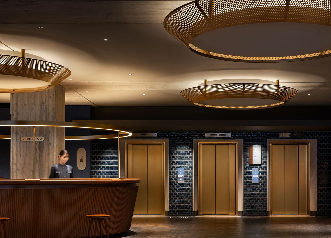 OMO7 橫濱的外觀,完整保留了暗褐色磁磚與清水混凝土的立面,讓建築與關內街景繼續以熟悉的姿態相處。對於室內新貌,設計團隊提出「接木式改修」的概念,如同農業與園藝中的「嫁接」手法,使新與舊自然共生成一體,讓現代感與歷史韻味在空間中相融並存。