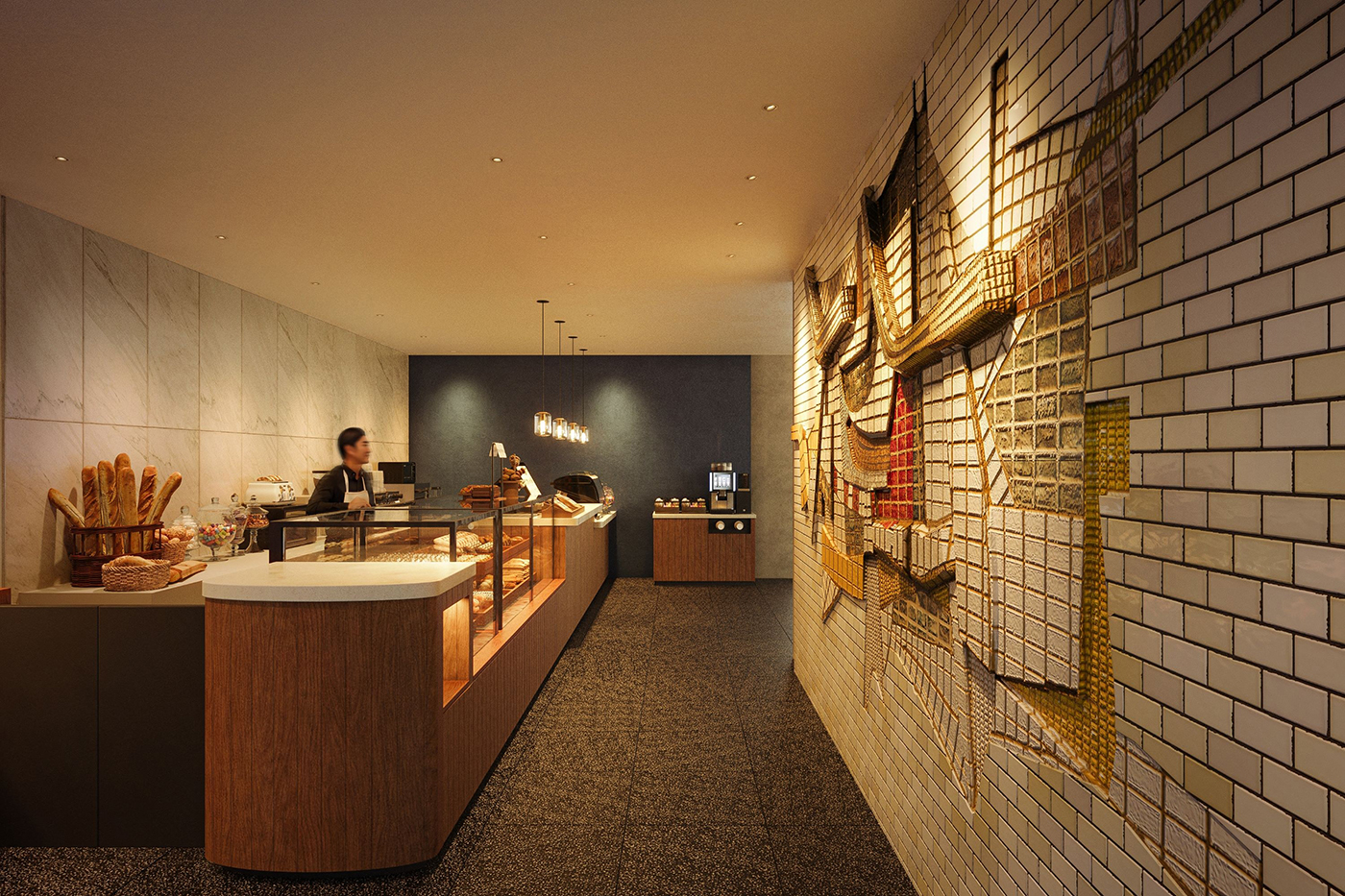 OMO Bakery 牆面以磁磚浮雕為亮點。(Photo Credit:星野リゾート)