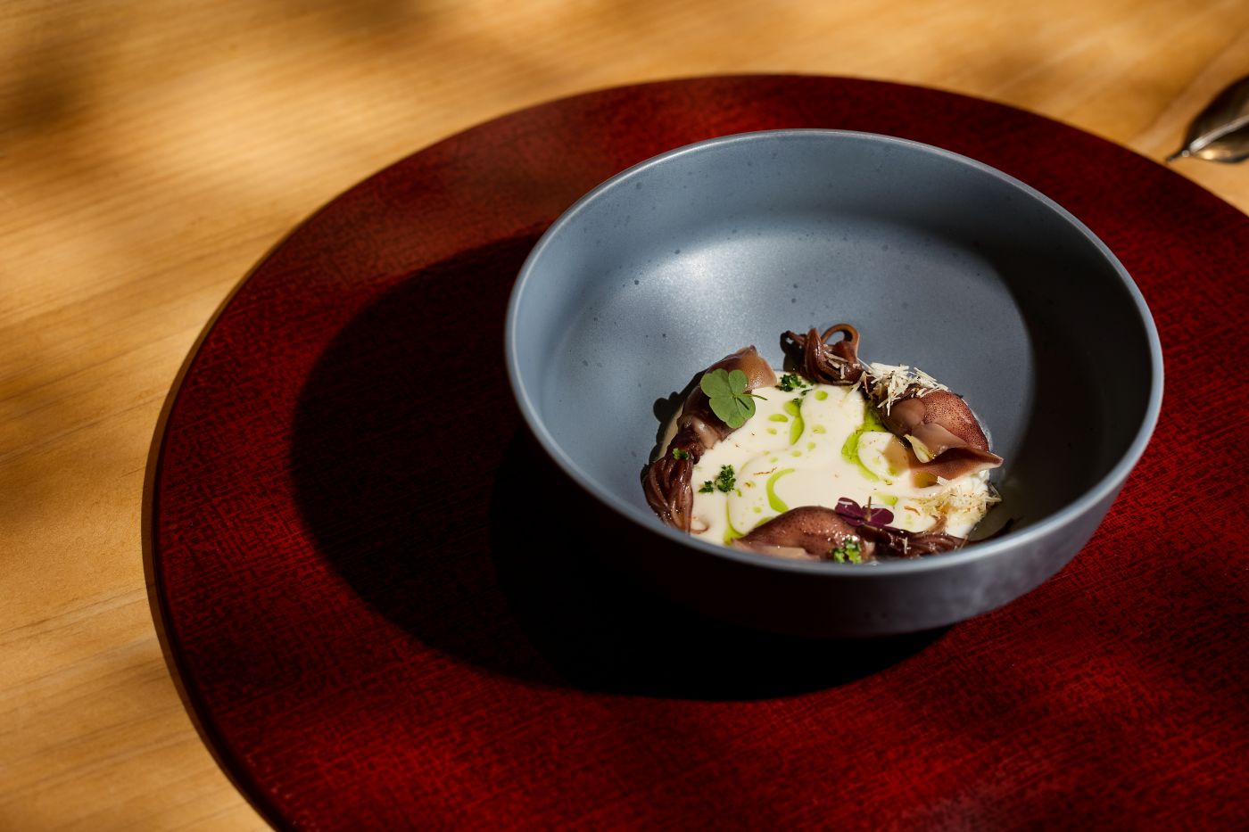 忠泰集團旗下日式料理餐廳 二階割烹 Nikai 本季以「春之海」為題,選用螢烏賊、白蛤、伊勢海老與渡蟹等當令海鮮,循著春日海洋意象鋪陳整席饗宴。