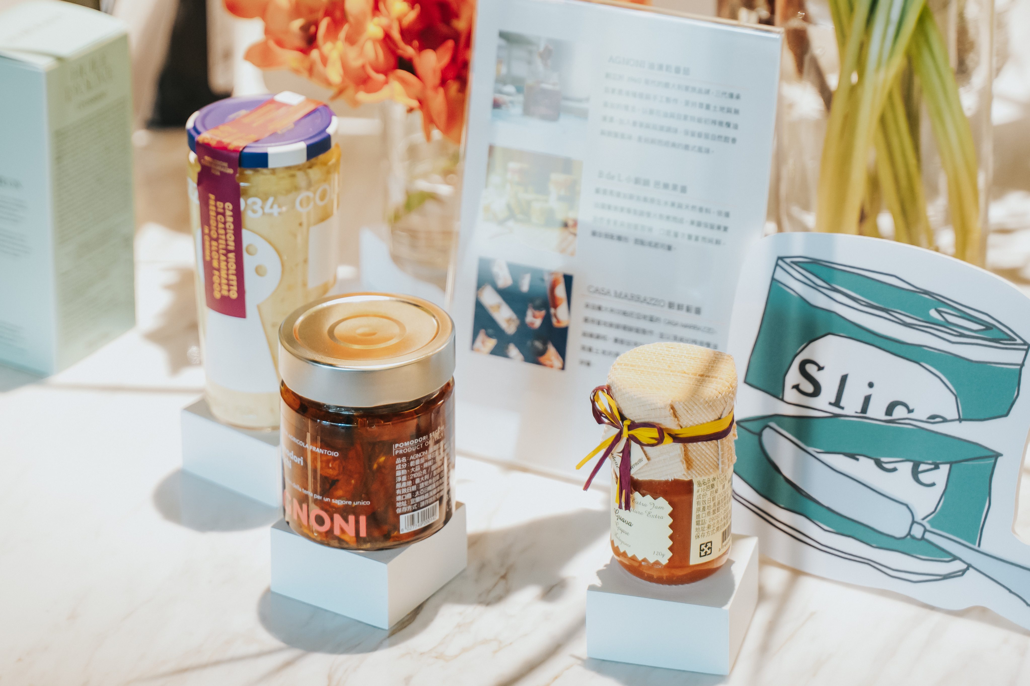(Photo Credit:Slice 幸福切片)此外,也引進多款適合搭配麵包與起司的歐陸風味佐料:義大利家族品牌 AGNONI 的油漬乾番茄,以葵花油與自家特級初榨橄欖油浸漬,保留番茄自然甜香與微酸層次;B de L 小銅鍋芭樂果醬,採用法國貴族家傳食譜,以馬達加斯加原生水果經銅鍋小批次手工熬煮;以及來自義大利坎帕尼亞的 CASA MARRAZZO 朝鮮薊醬,初榨橄欖油調和新鮮朝鮮薊,呈現南義獨有的濃郁卻清新的風土風味。