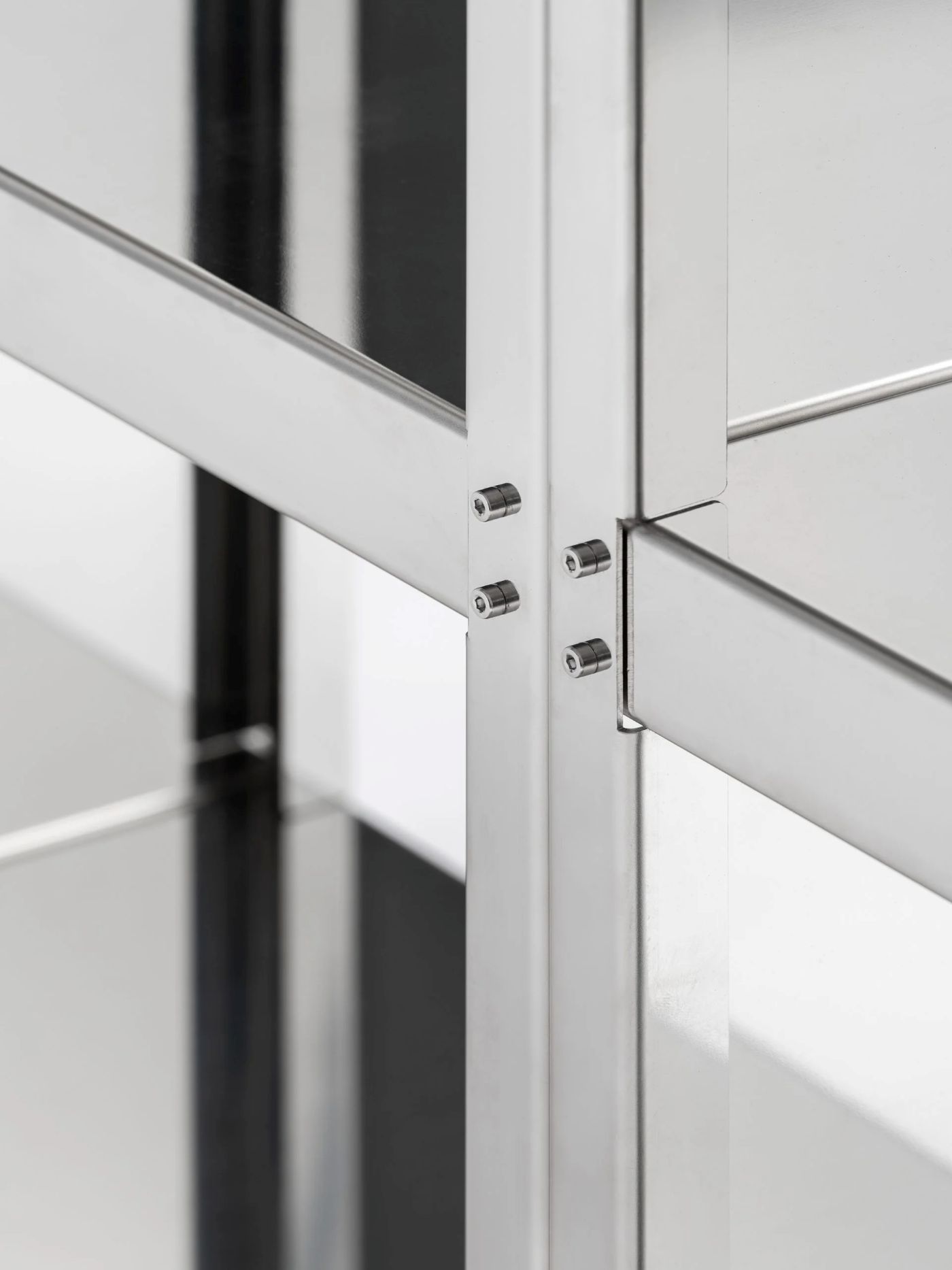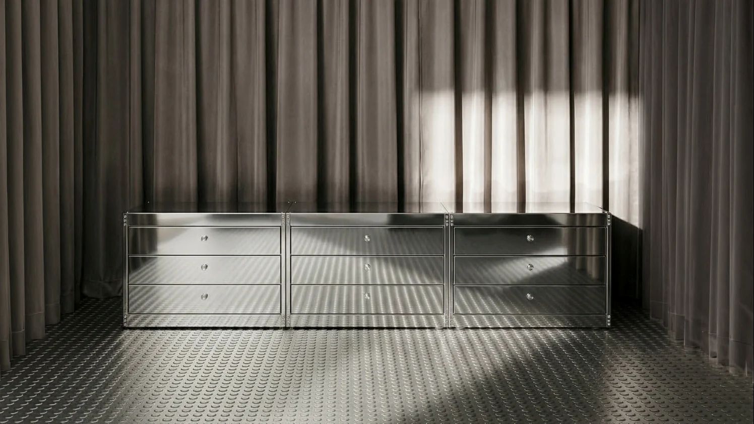第一眼看上去,NM3 的家具像是還沒做完。沒有塗層,沒有焊接痕跡,沒有收尾。不鏽鋼就是不鏽鋼,接縫就是接縫,螺絲就是螺絲,不做掩飾,每一件都是精準切割和巧妙組裝的成果。實際構造如何,家具就長得如何。如果你習慣用「完成度」來判斷一件家具,NM3 的設計會讓你找不到參照點。但這正是問題所在,因為我們對家具「完成」的判斷,其實大多數時候判斷的不是結構,而是表面。