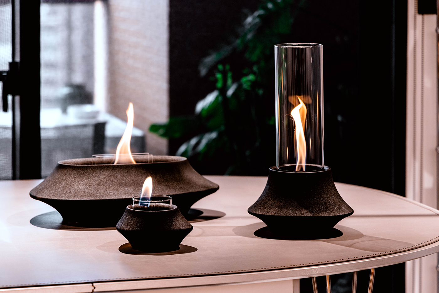 此次最受矚目的作品,莫過於許向罕與台灣品牌 Tenderflame 共同推出的三款全新系列火爐!擁有創新火焰專利技術、並以低碳永續為發展目標的 Tenderflame,其生質燃料燃燒時不產生一氧化碳、無需煙囪,並榮獲 UL 綠色環保標章認證,是兼具安全與環保的火焰科技。
