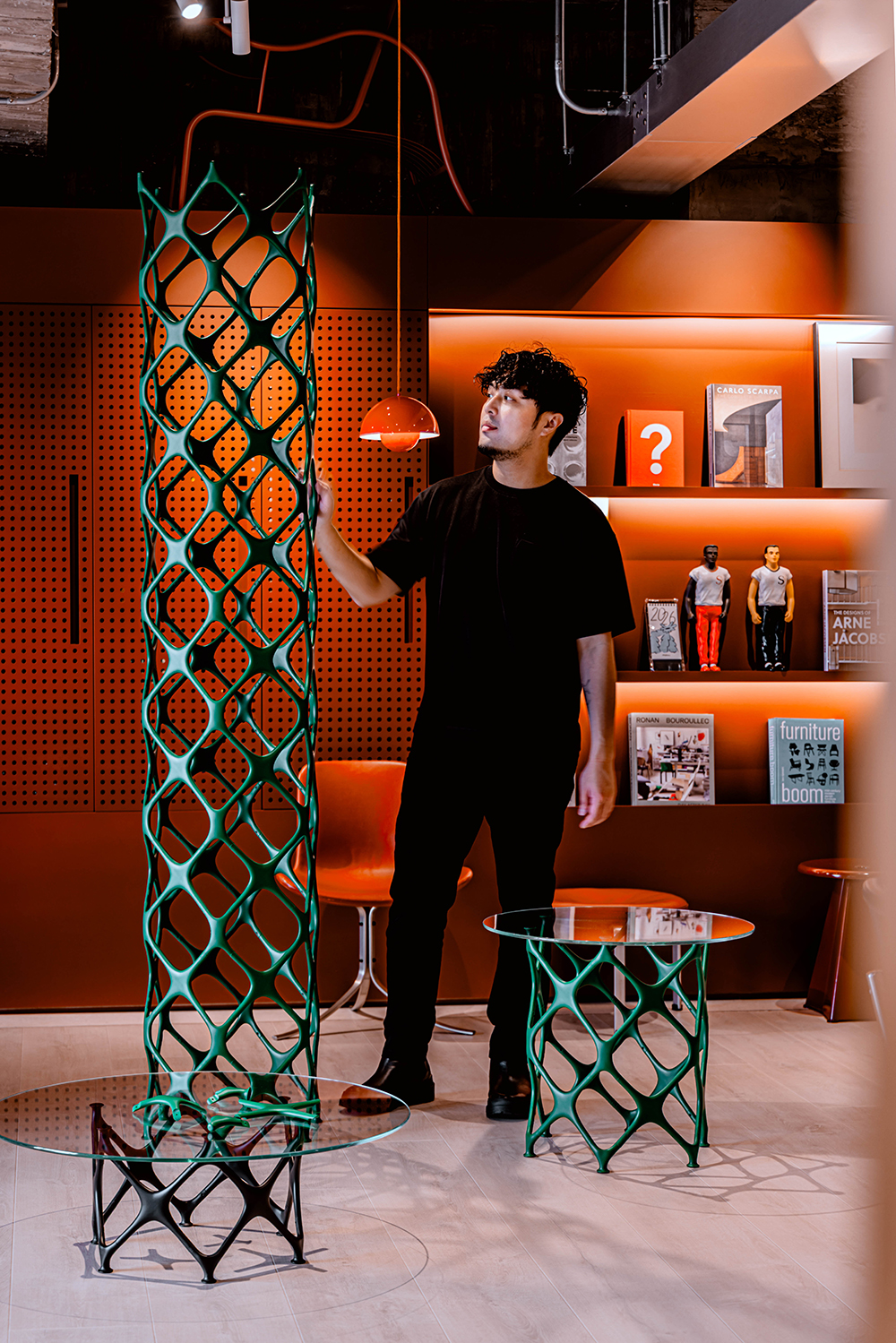 除了 Tenderflame 的全新系列,許向罕也持續深化與義大利品牌 Cappellini 的長期合作關係。此次將在 Superstudio Maxi 展區,以他的經典作品〈X Table System〉為基礎打造雕塑裝置〈X Forest〉,模組化結構結合了植物與空間,透過不同高度與量體應用於多元的場域尺度,並可隨季節替換不同地域植物,讓設計從功能性物件延伸為融入當代生活的藝術存在。