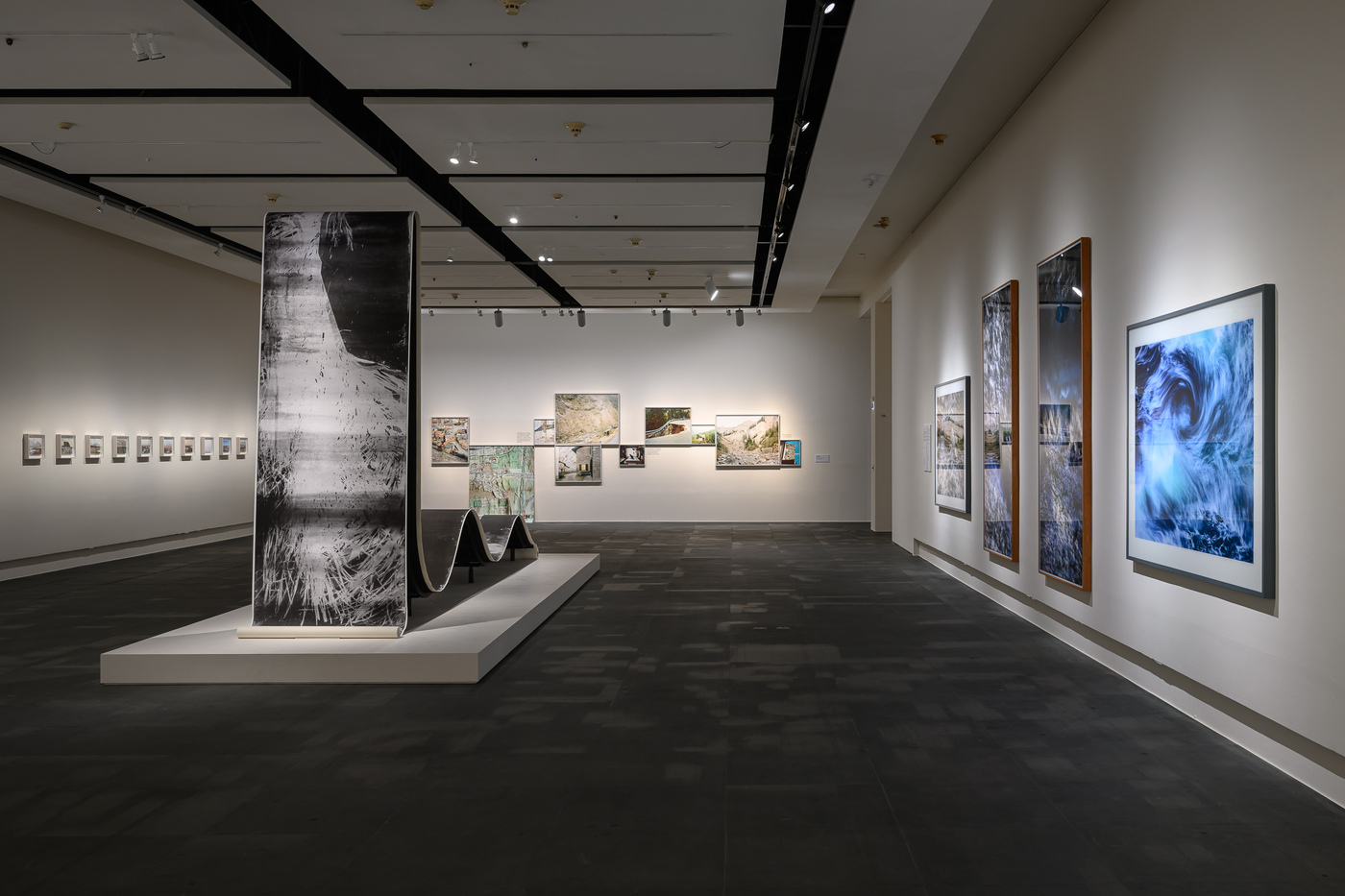 新井卓(Takashi Arai)巡訪日、美及馬紹爾群島核歷史相關的遺址,透過數百張 6x6 釐米的銀版攝影,在鏡面般的金屬質地上,凝鍊出他所稱的「微型紀念碑」,讓動盪的核能歷史在微觀畫幅中恆久定格。瑪麗娜・卡內韋(Marina Caneve)的作品則如一場穿越時空的災前演習,透過回溯 1966 年重創義大利多羅米提山區的洪災,在歷史殘影中試圖勾勒出未來災難的預言輪廓。